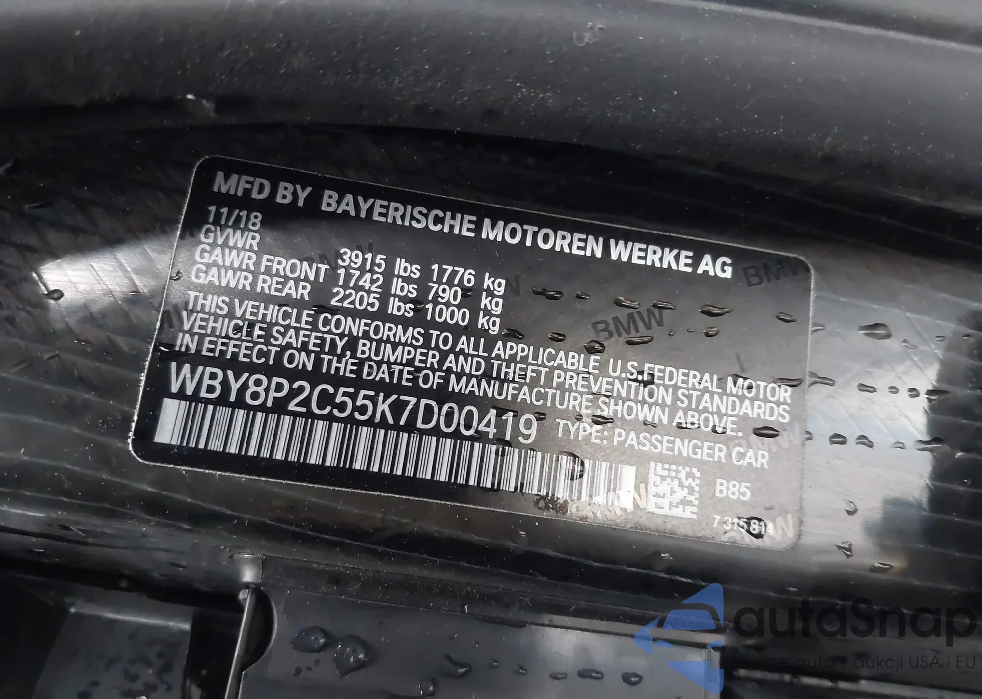 LOT: 42874013 VIN: WBY8P2C55K7D00419