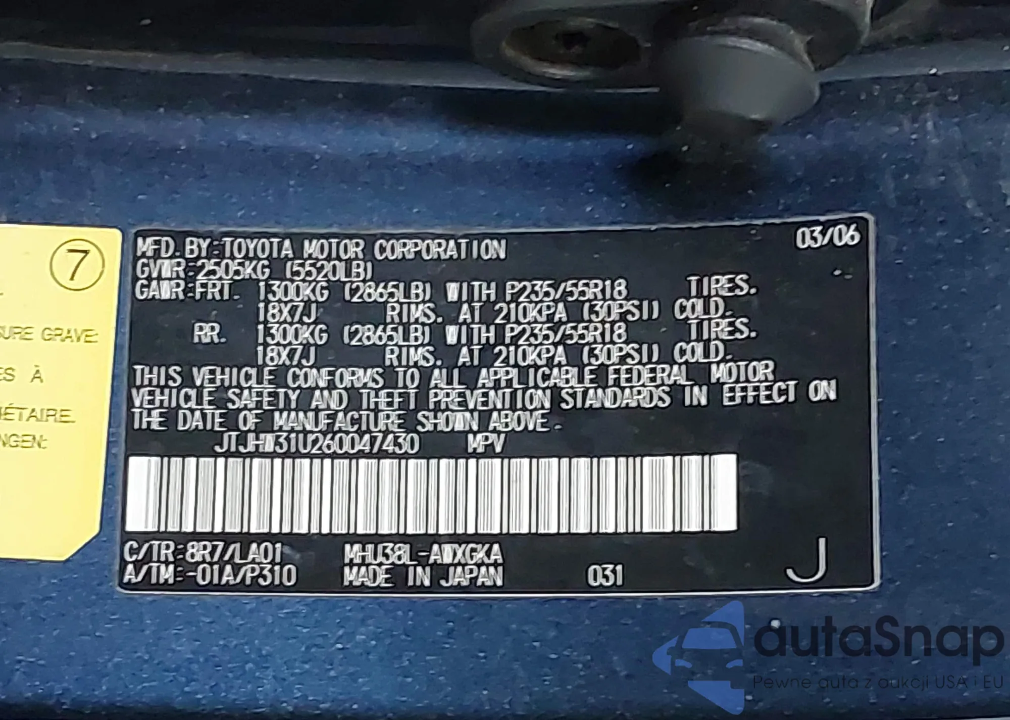 LOT: 42813700 VIN: JHLRE38348C006339
