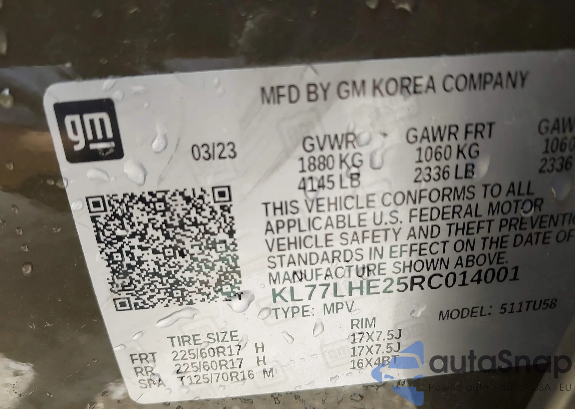 LOT: 42845768 VIN: 2HKRW2H94MH631640