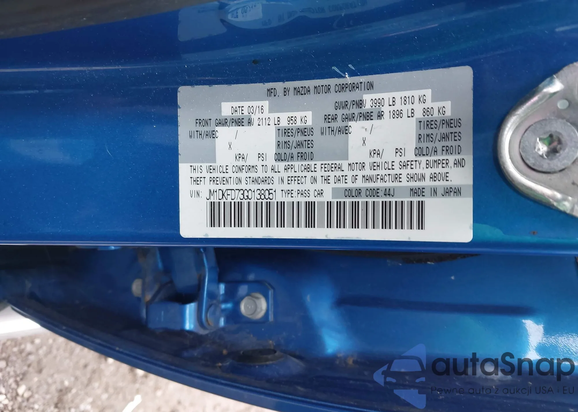 LOT: 42873550 VIN: JM1DKFD73G0138051