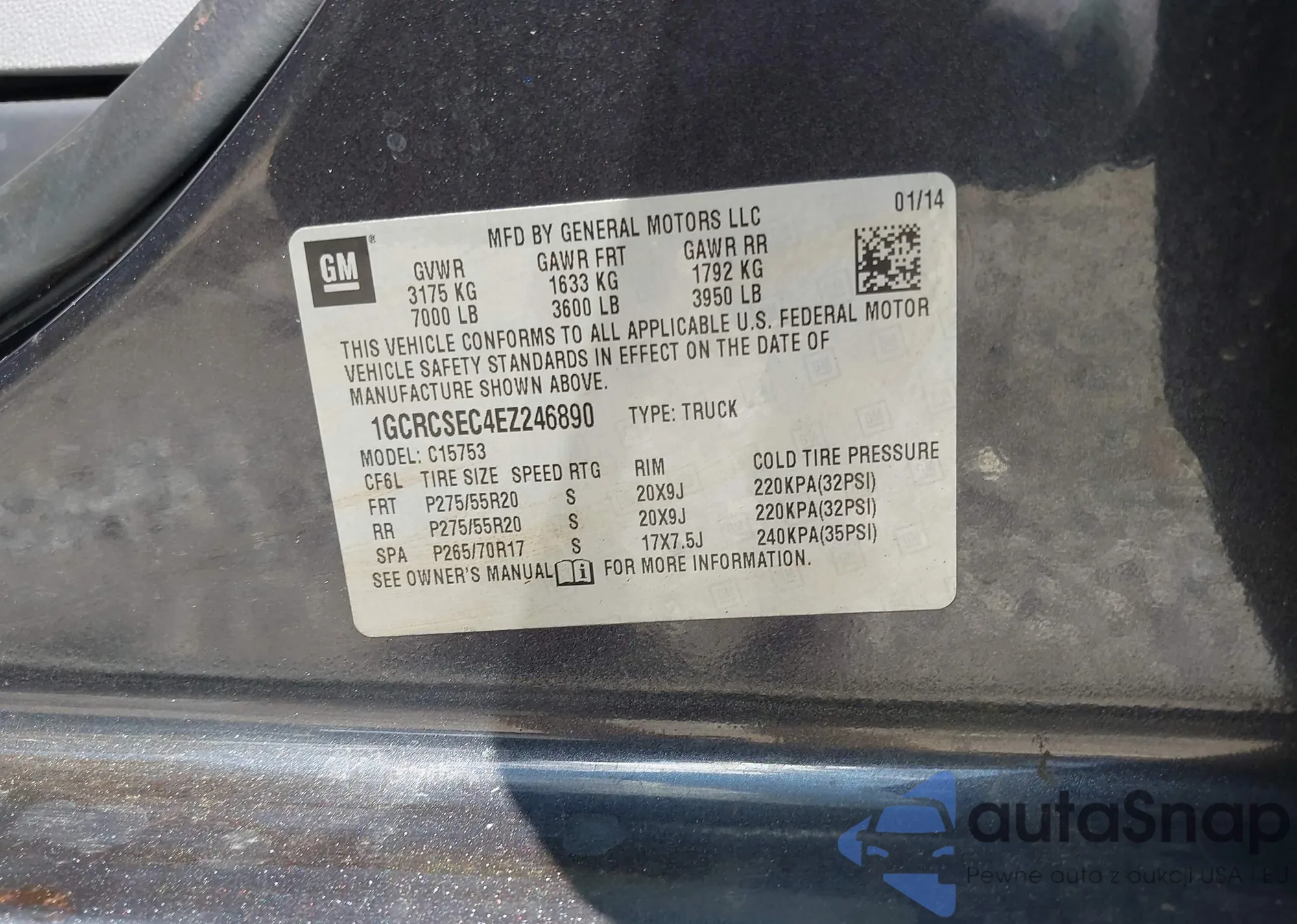 LOT: 42957960 VIN: 1GCRCSEC4EZ246890