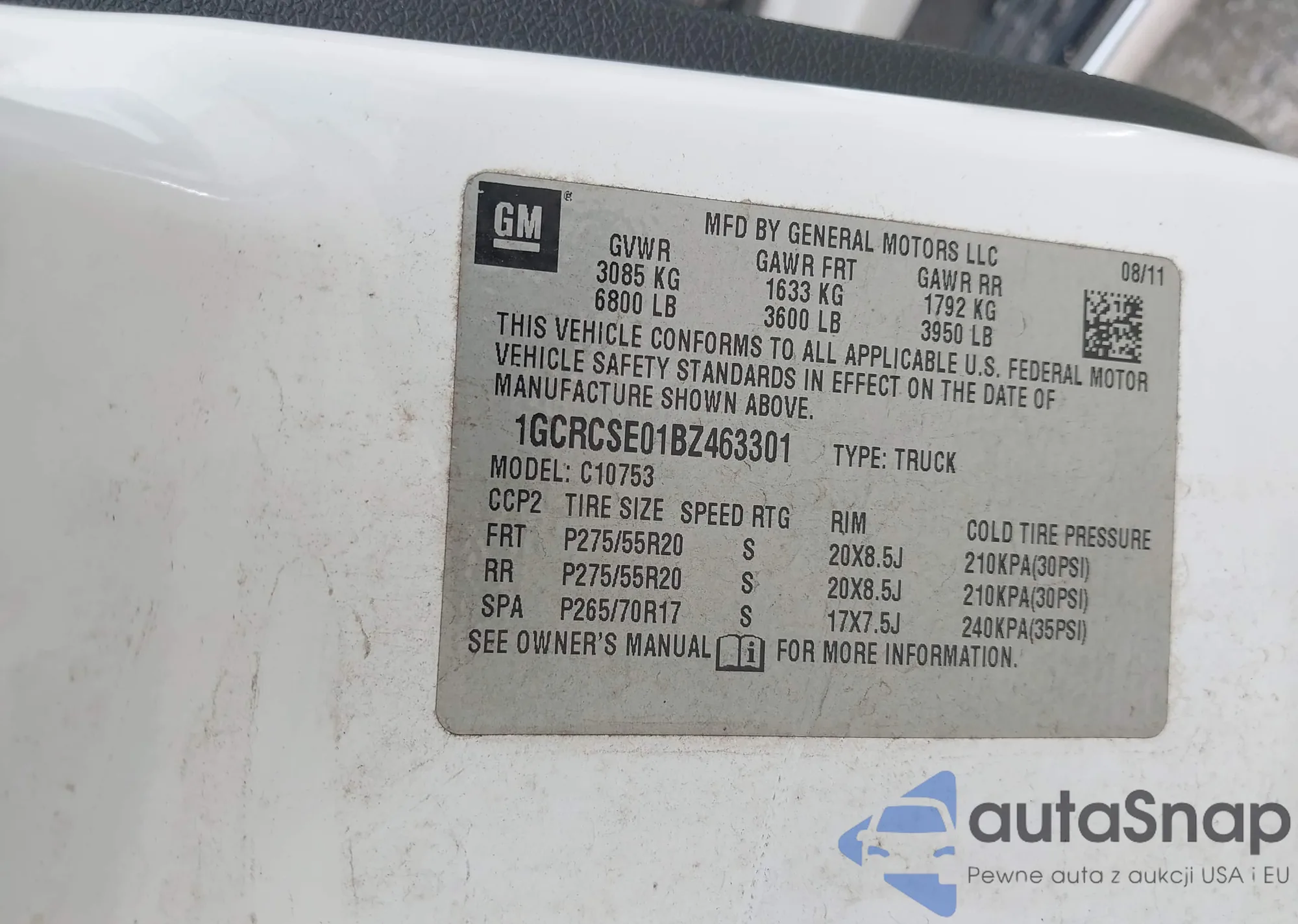 • VIN 1GCRCSE01BZ463301