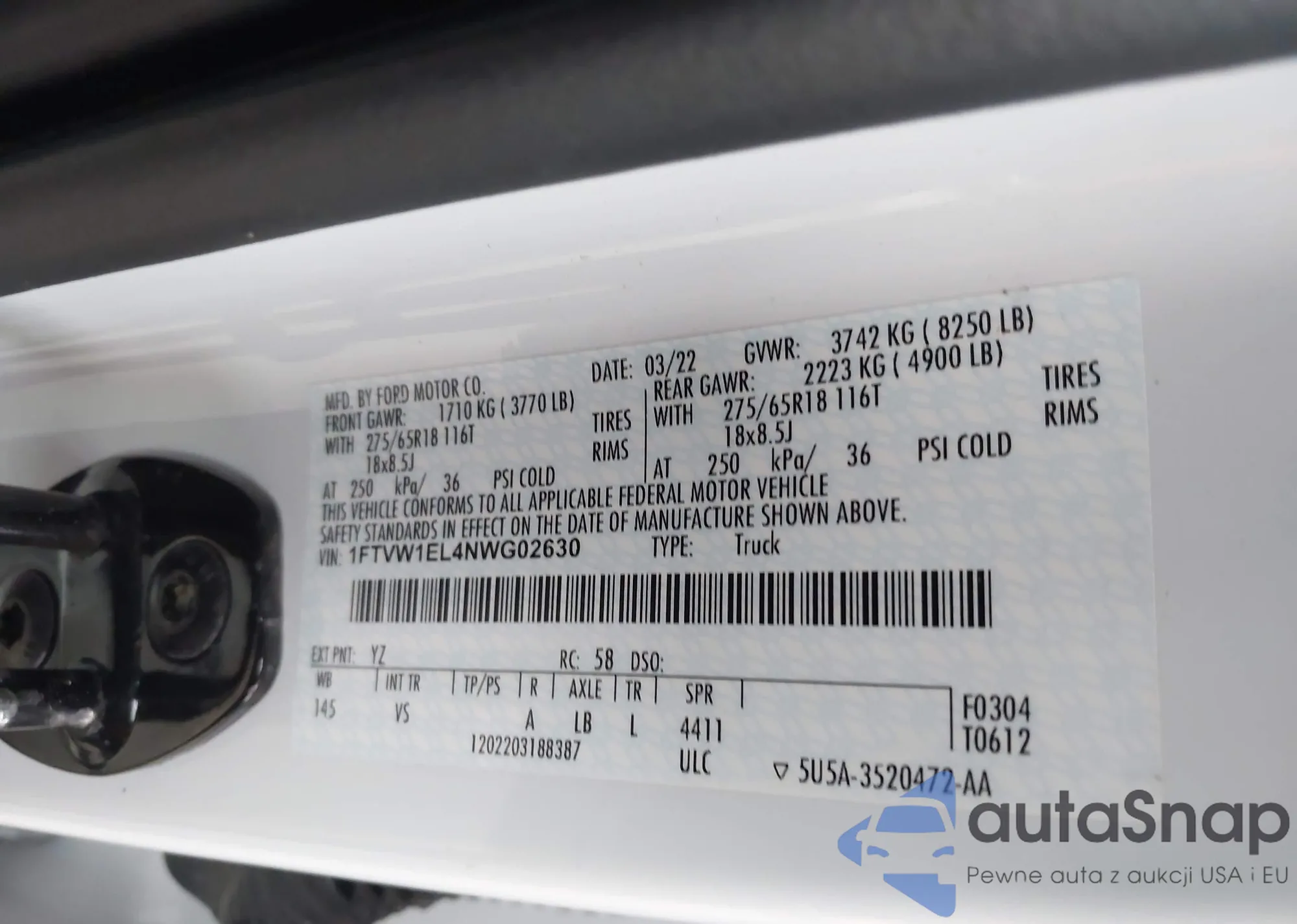 • VIN 1FTVW1EL4NWG02630