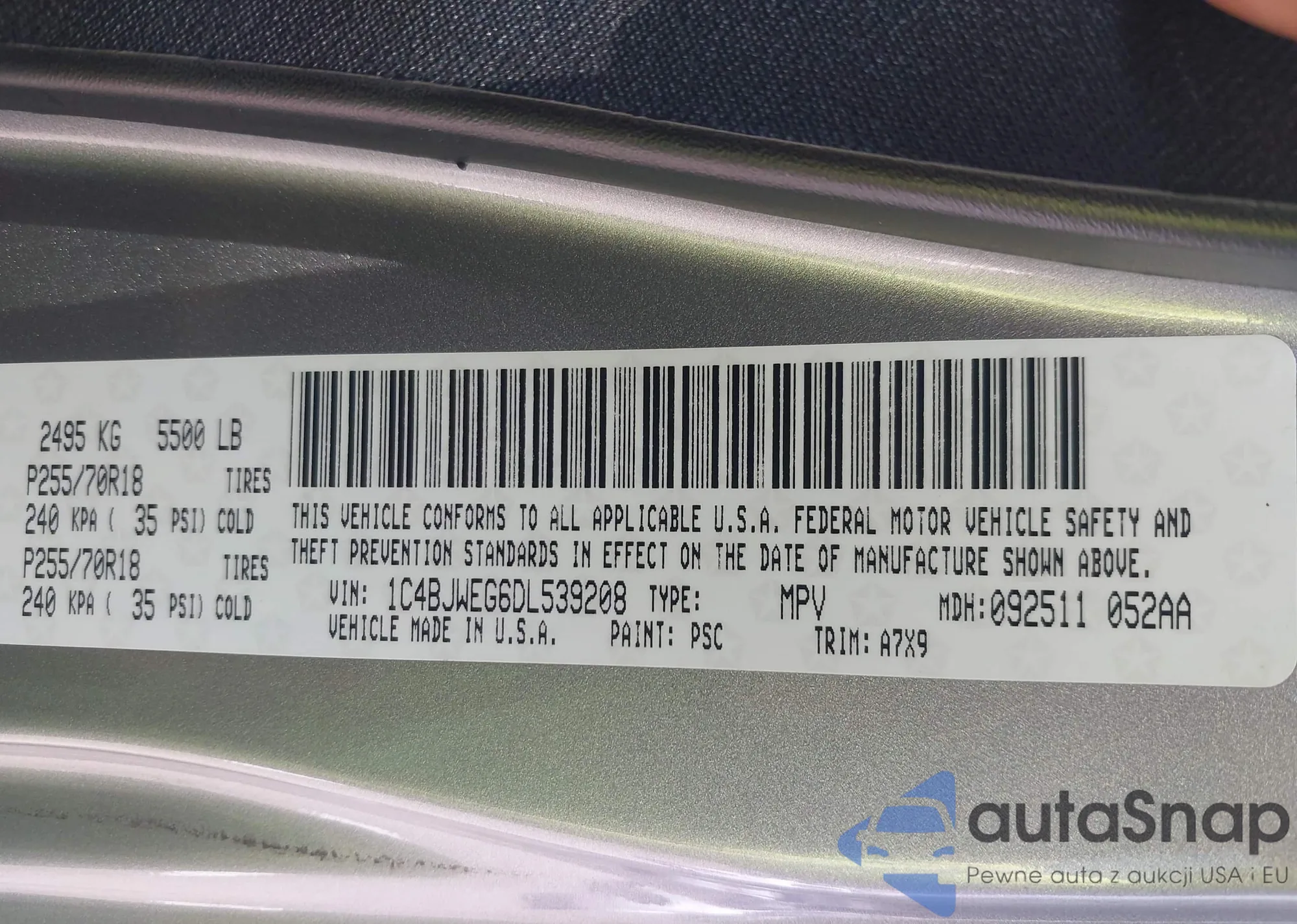 • VIN 1C4BJWEG6DL539208