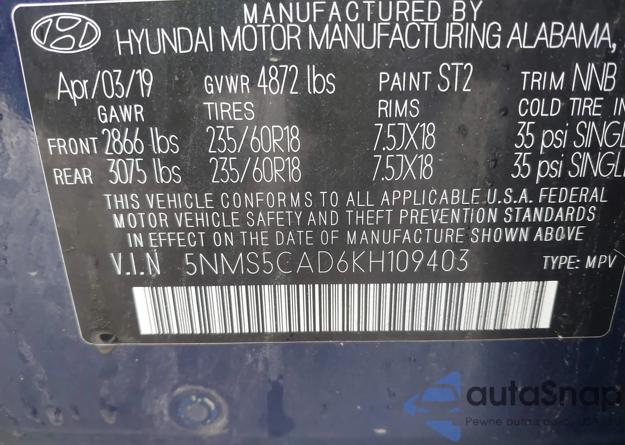 • VIN 4T1B11HK9KU189398