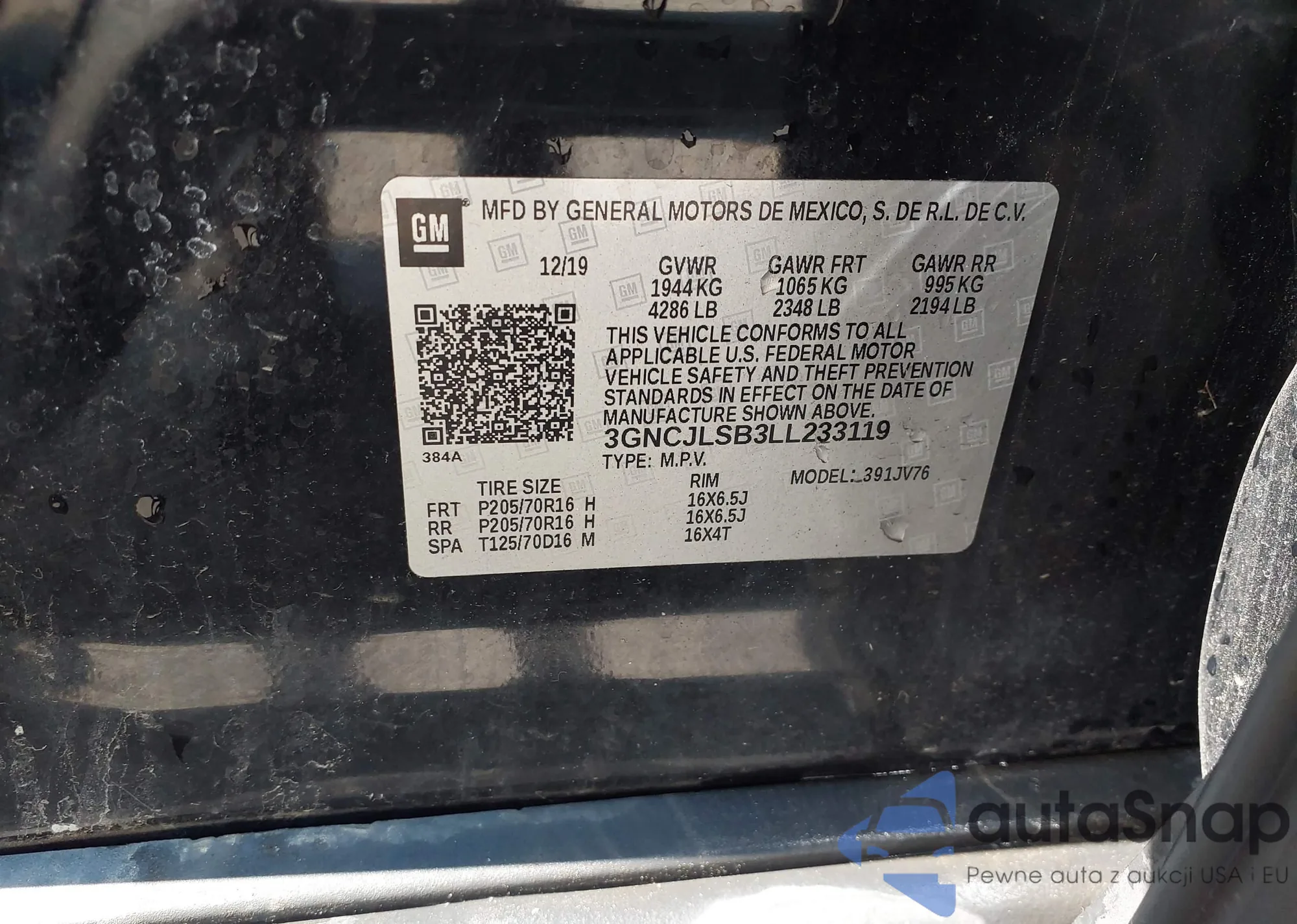 • VIN 3GNCJLSB3LL233119