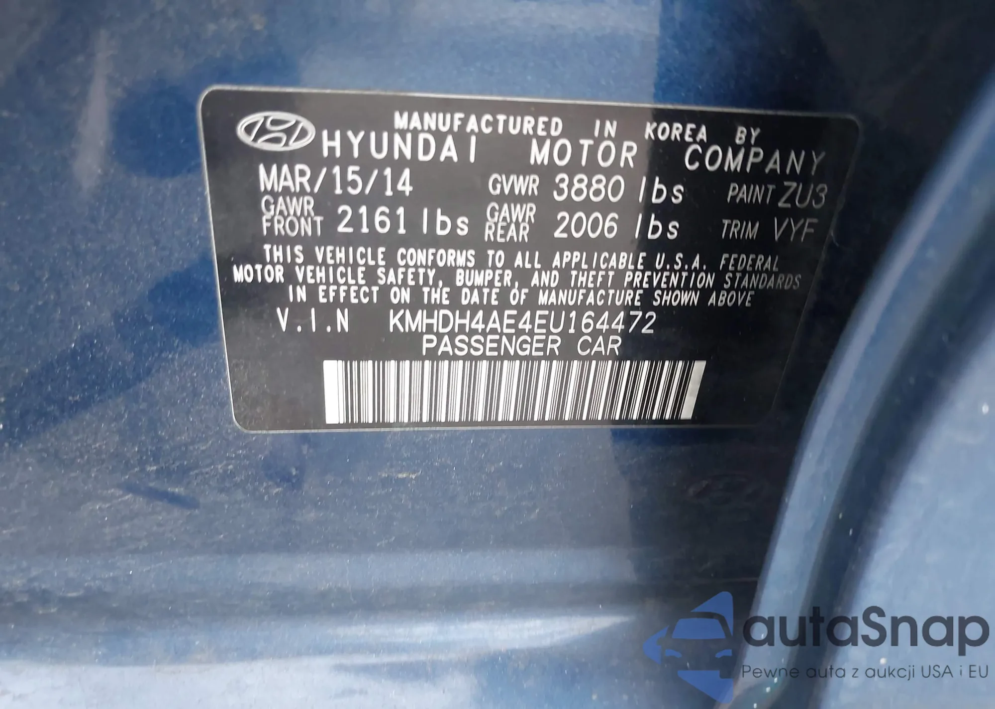 • VIN KMHDH4AE4EU164472