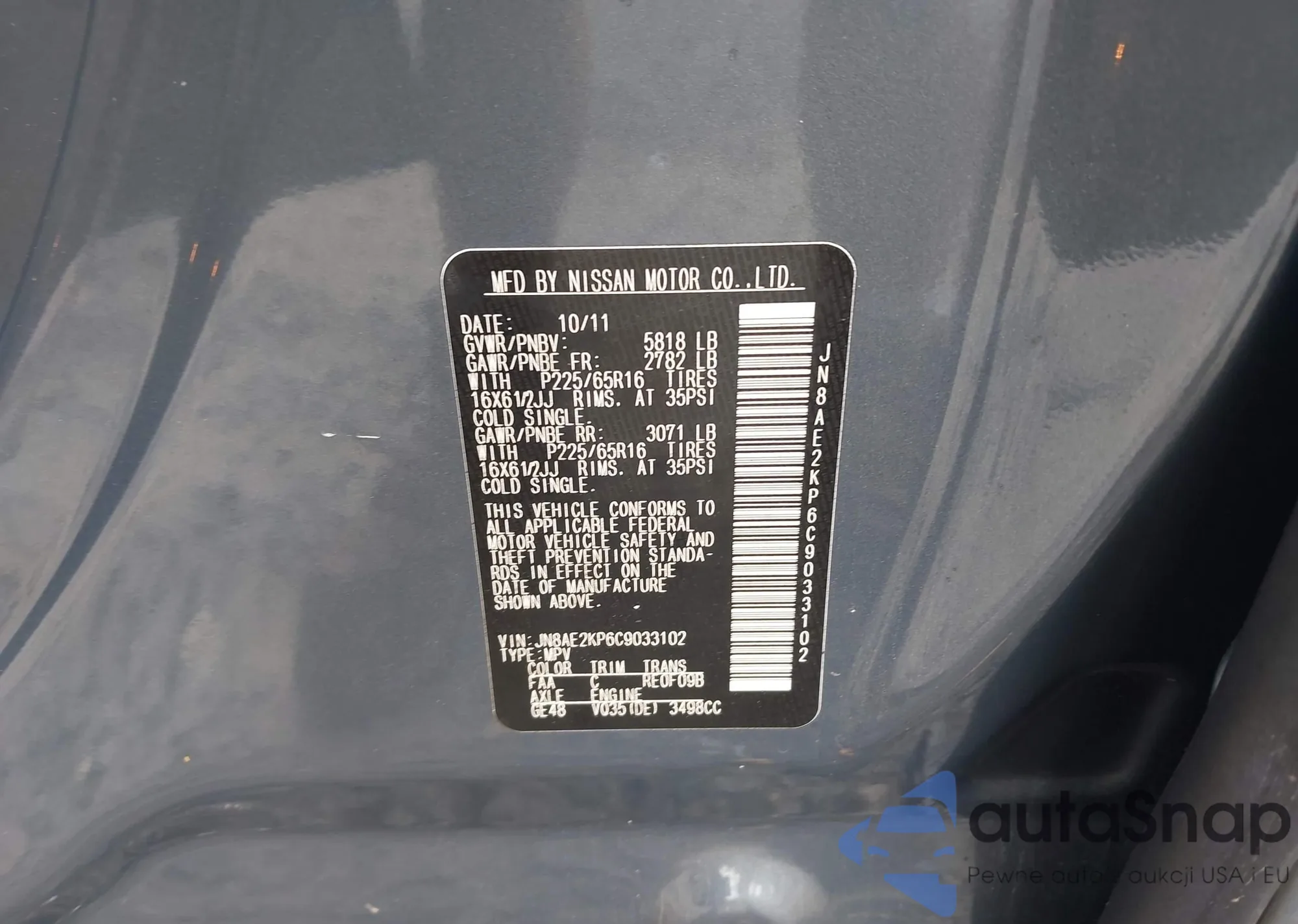 LOT: 42756547 VIN: 4T1BK3DB4BU413269