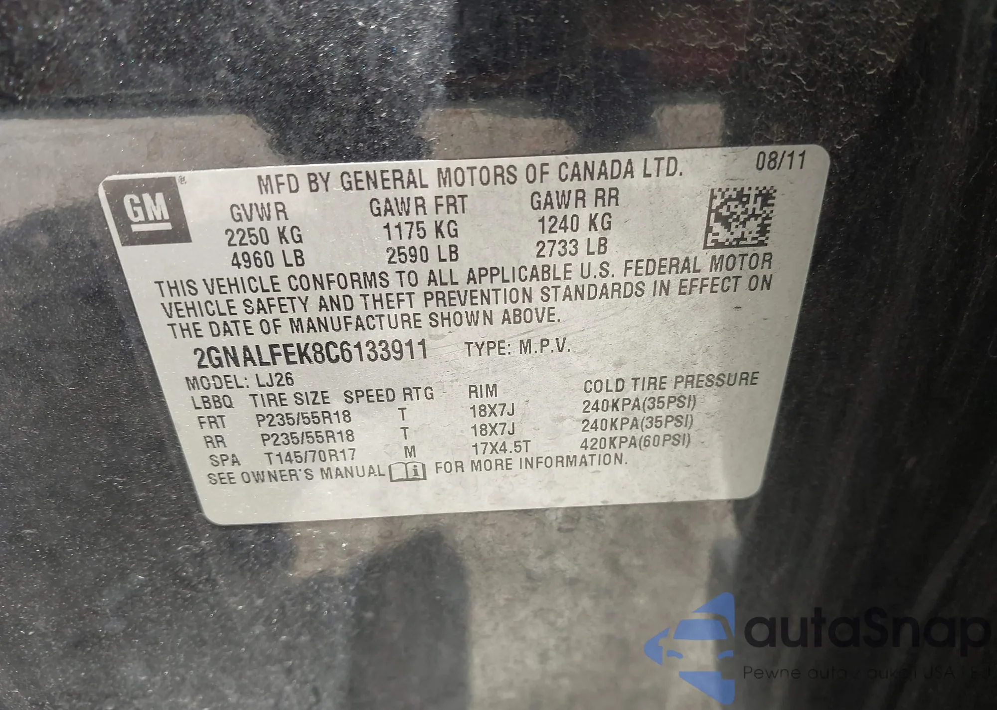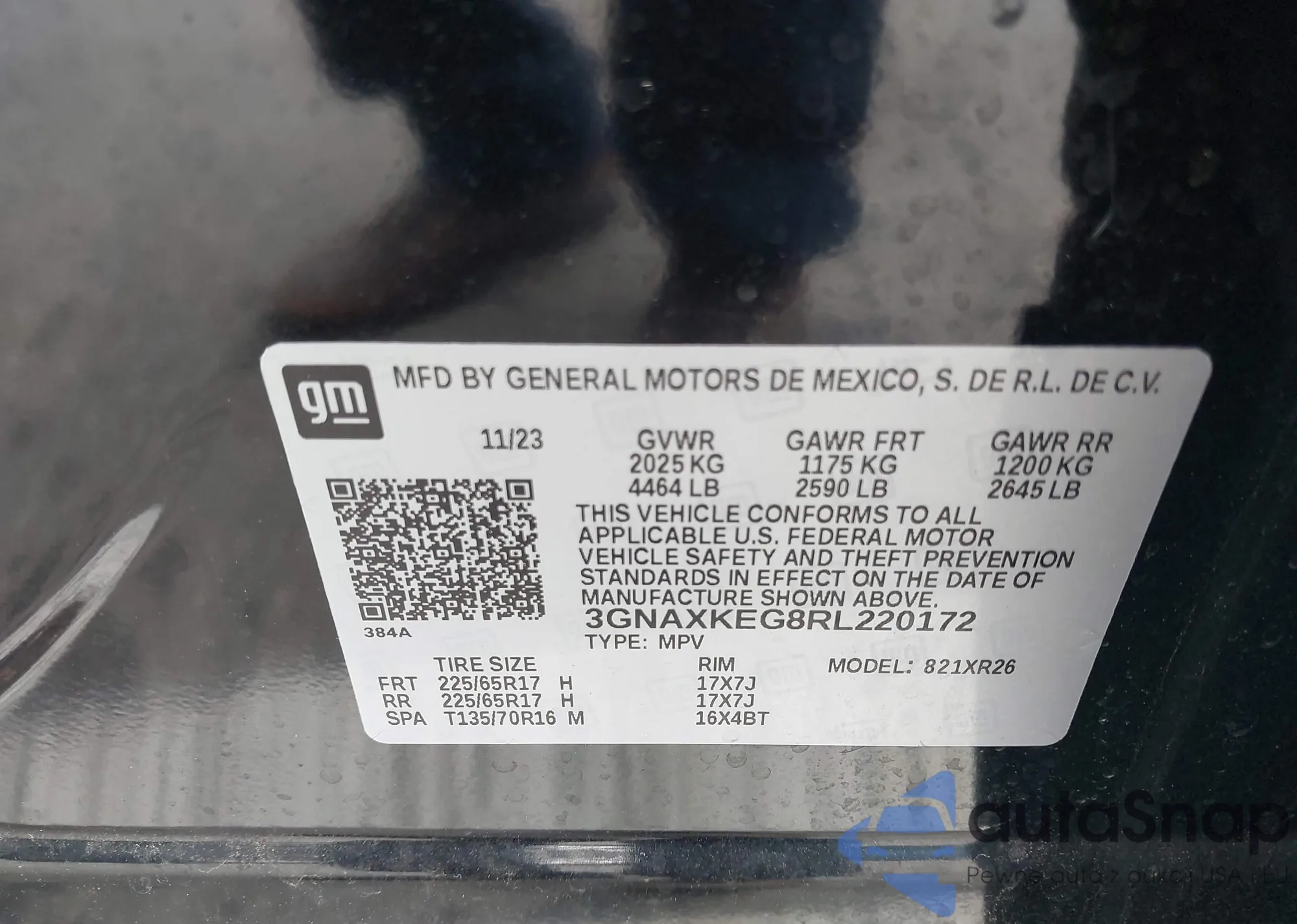 • VIN 3GNAXKEG8RL220172