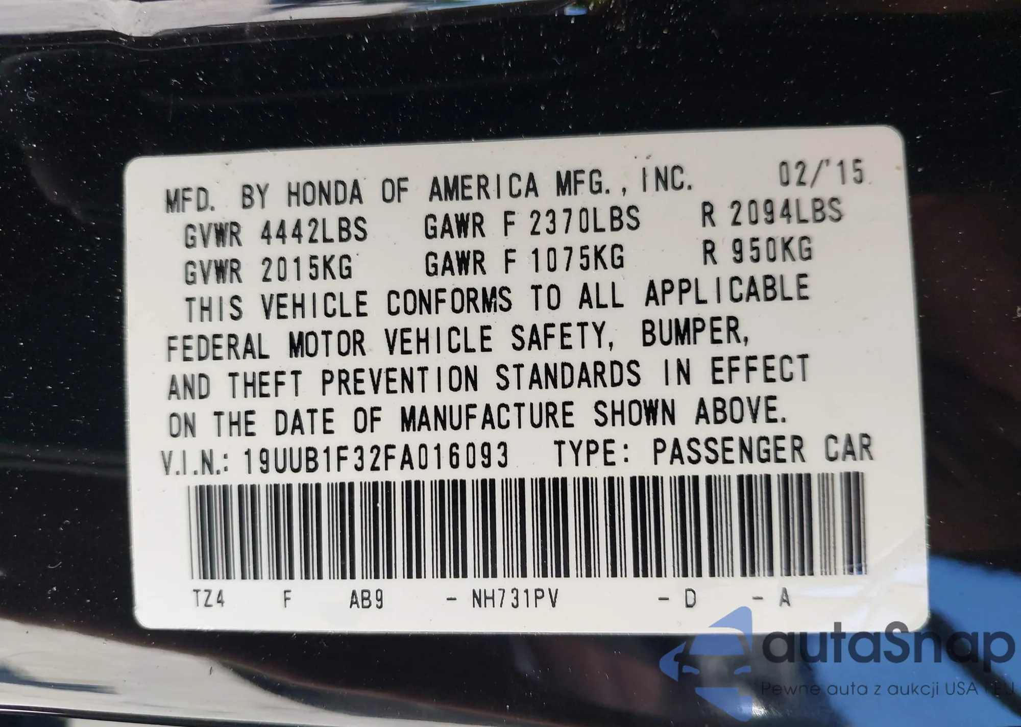 • VIN 19UUB1F32FA016093