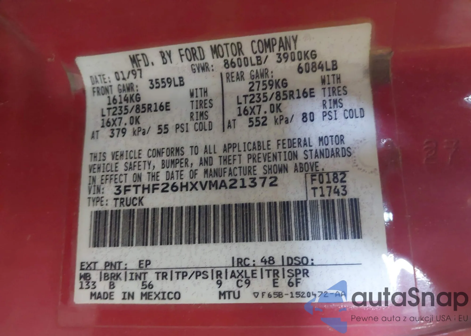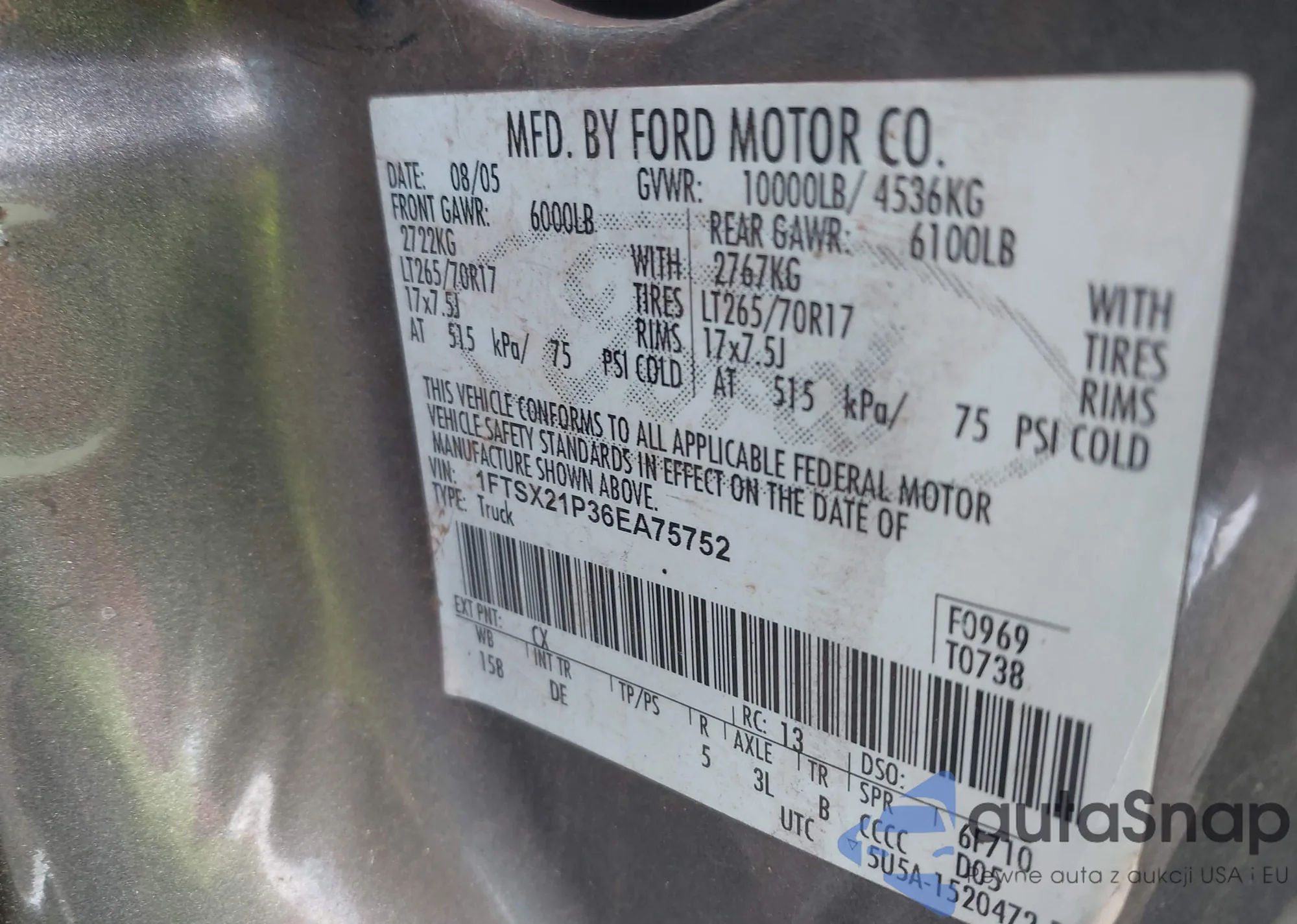 • VIN 4USFE43527LY80258