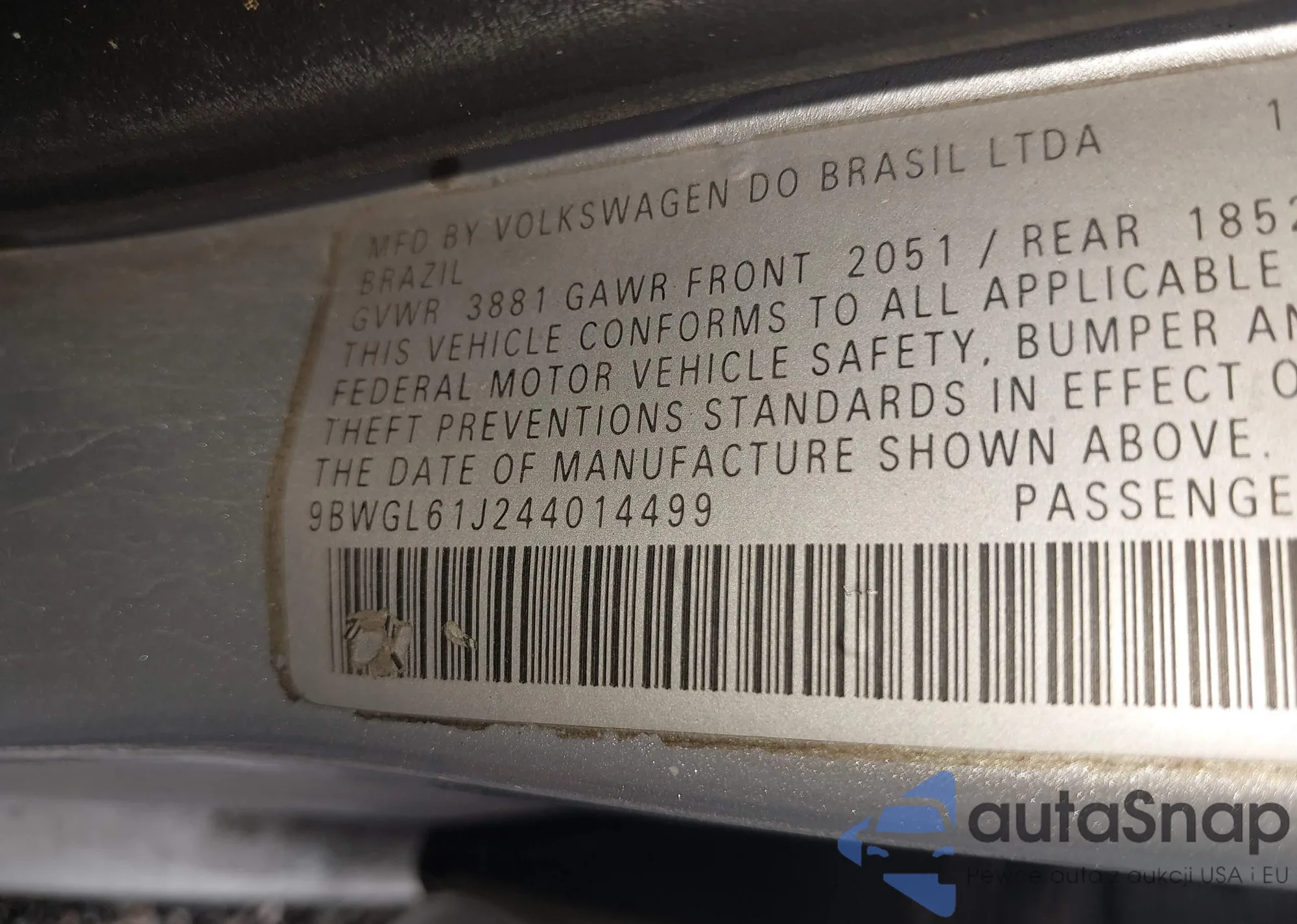 • VIN 9BWGL61J244014499
