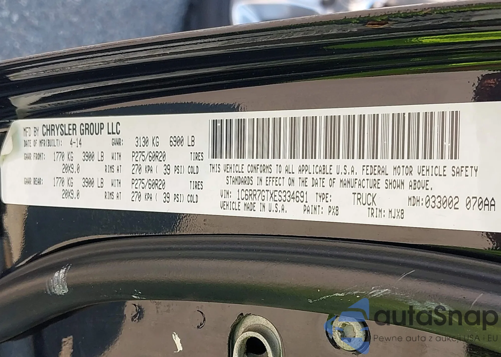 • VIN 1FTFW1CF7DKE09881