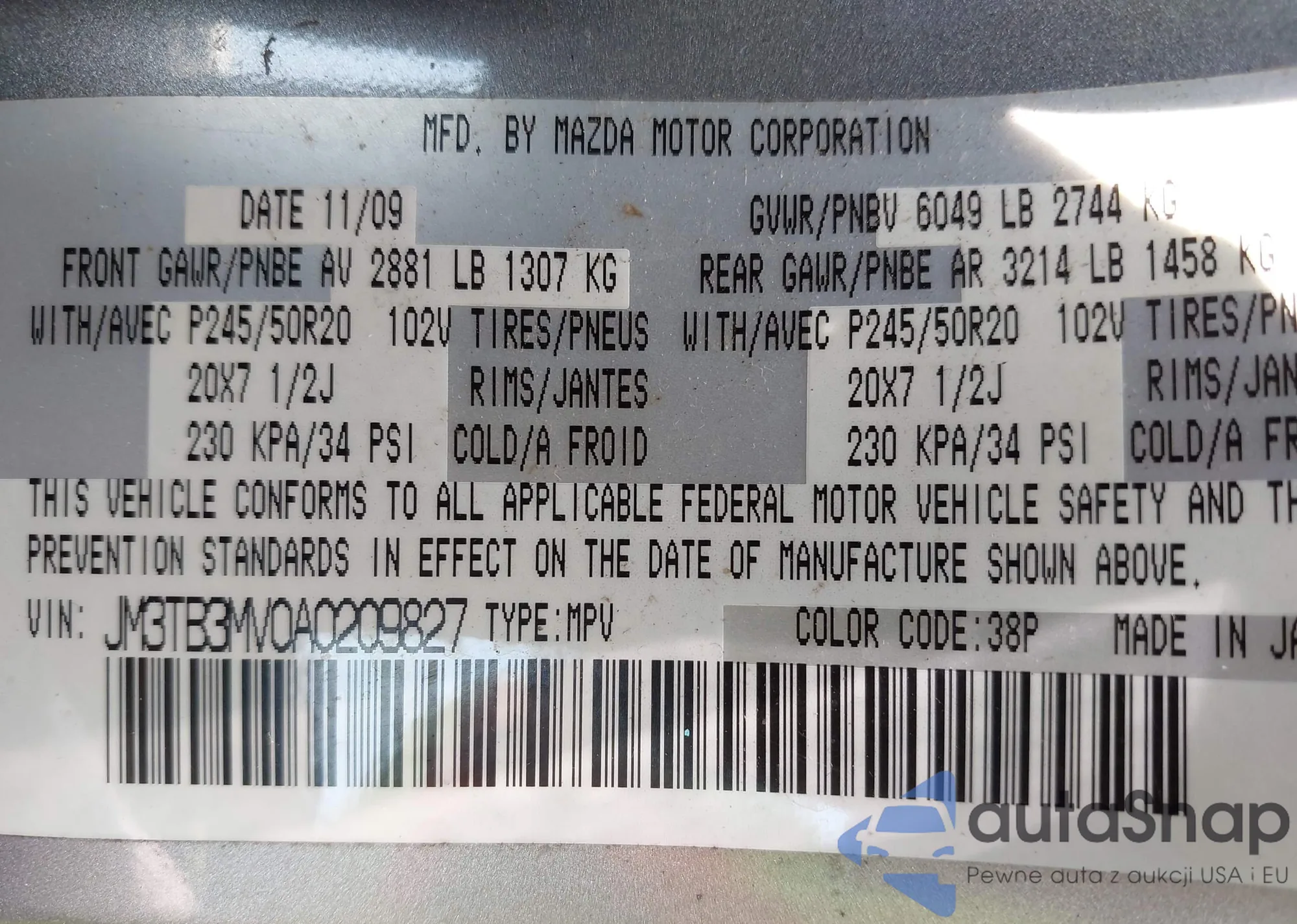 LOT: 42903475 VIN: JM3TB3MV0A0209827