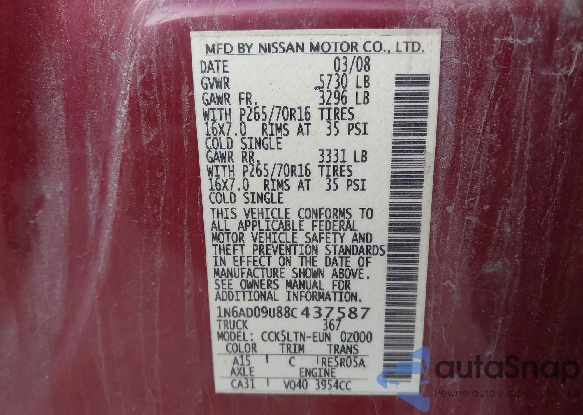 • VIN 1N6AD09U88C437587