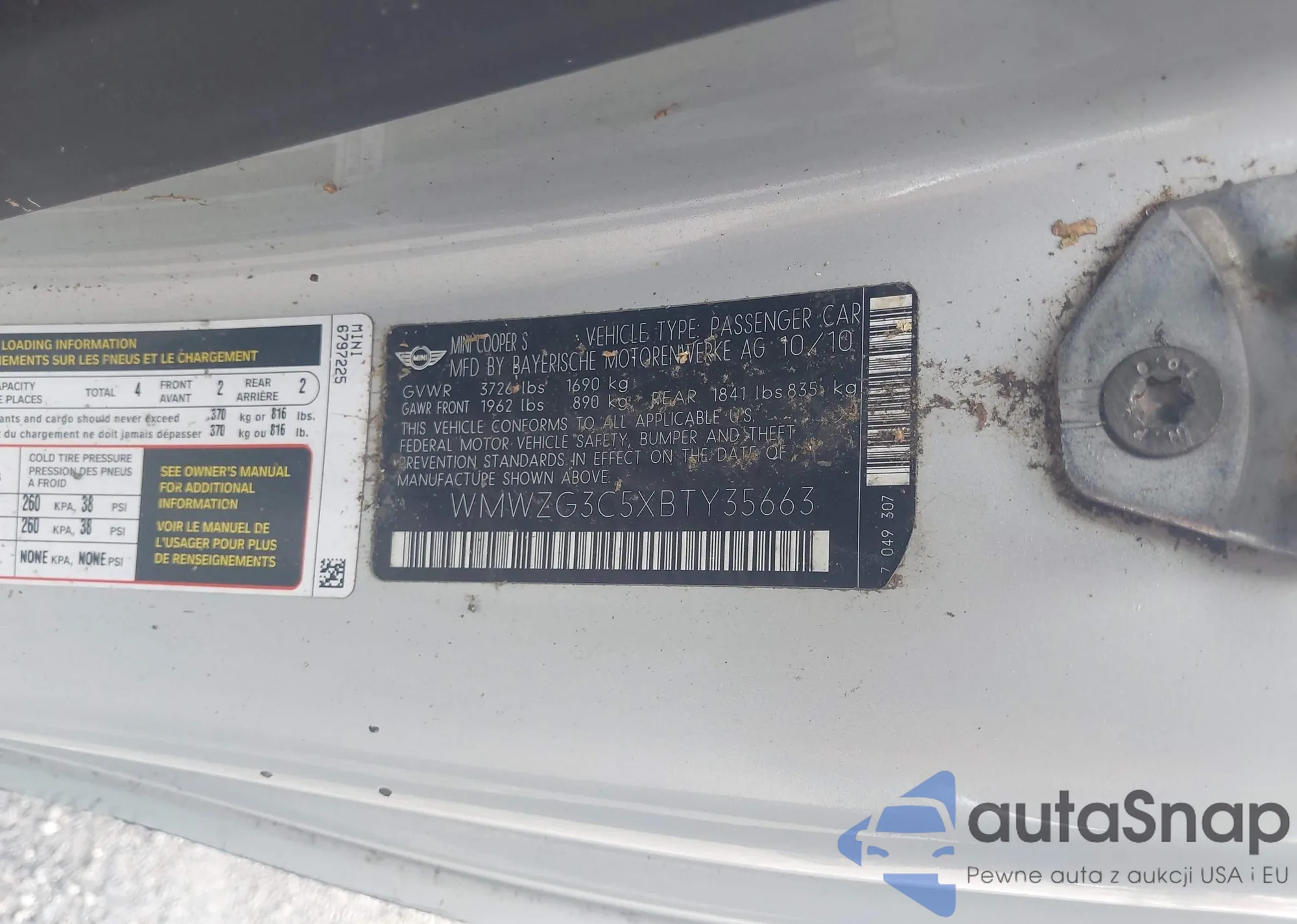 • VIN WMWZG3C5XBTY35663