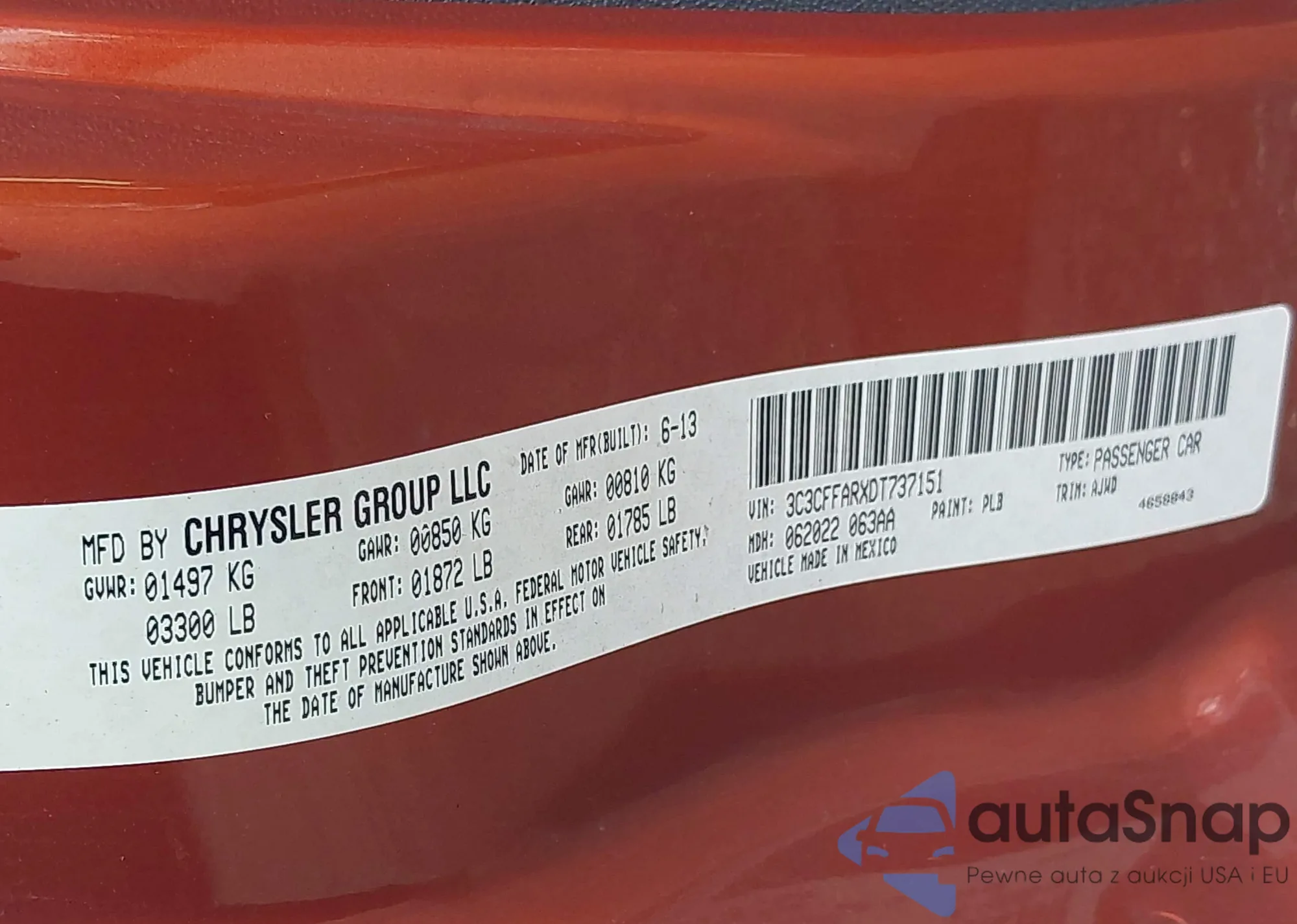 • VIN 3C3CFFARXDT737151