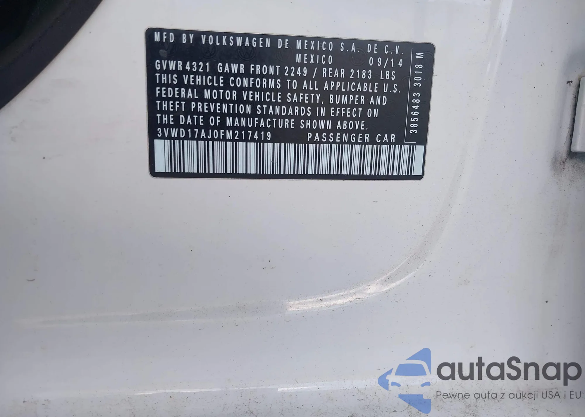 • VIN 3VWD17AJ0FM217419