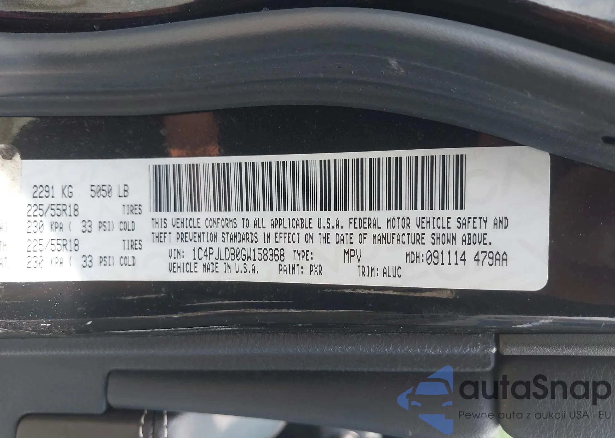 LOT: 42468294 VIN: 1C4PJLDB0GW158368