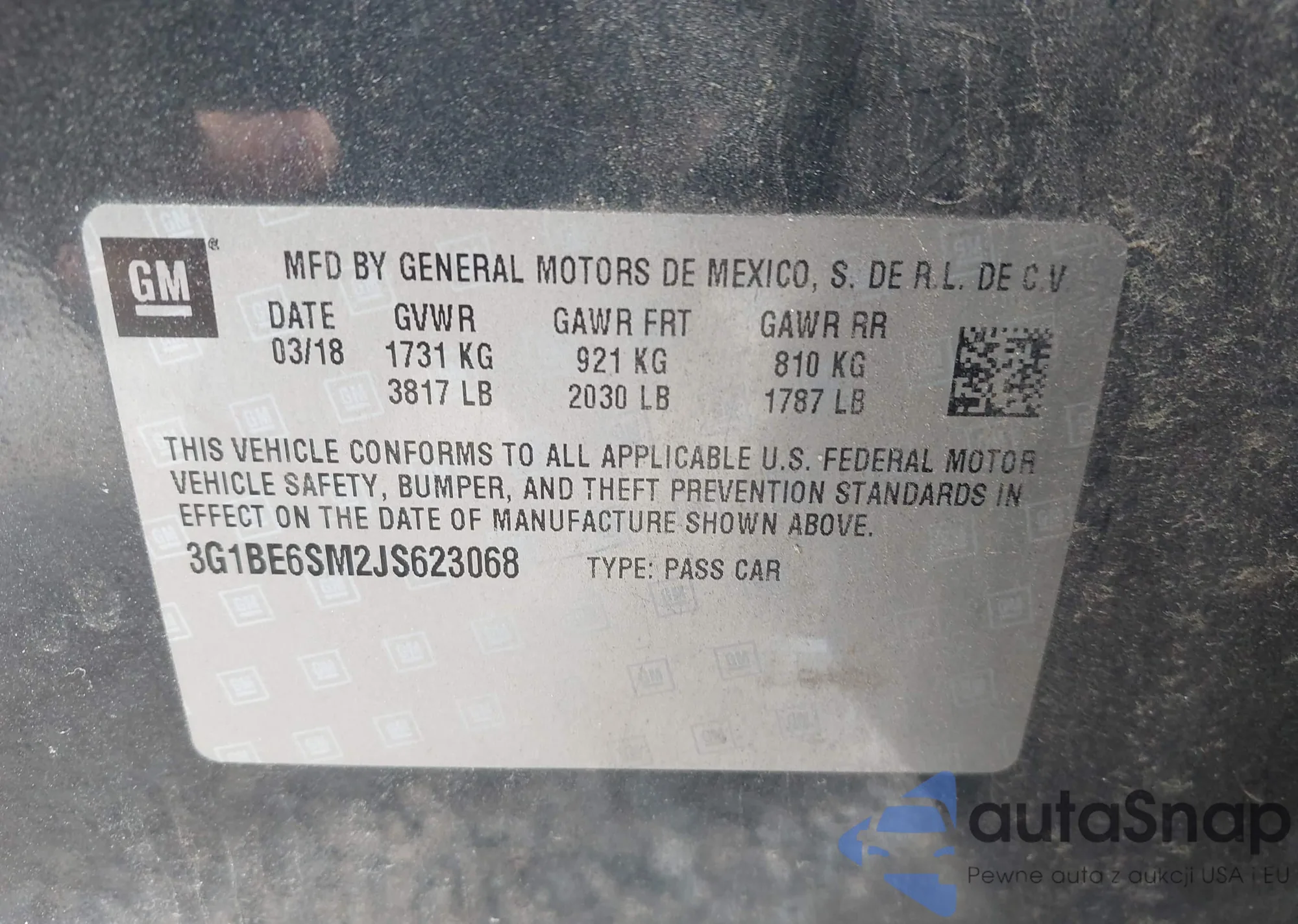 LOT: 42705740 VIN: 3G1BE6SM2JS623068