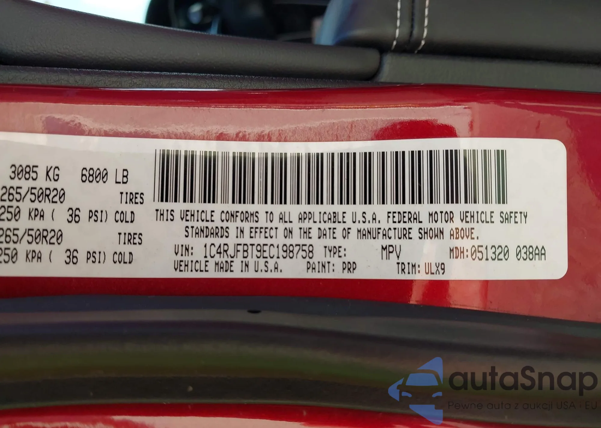 • VIN 1C4RJFBT9EC198758