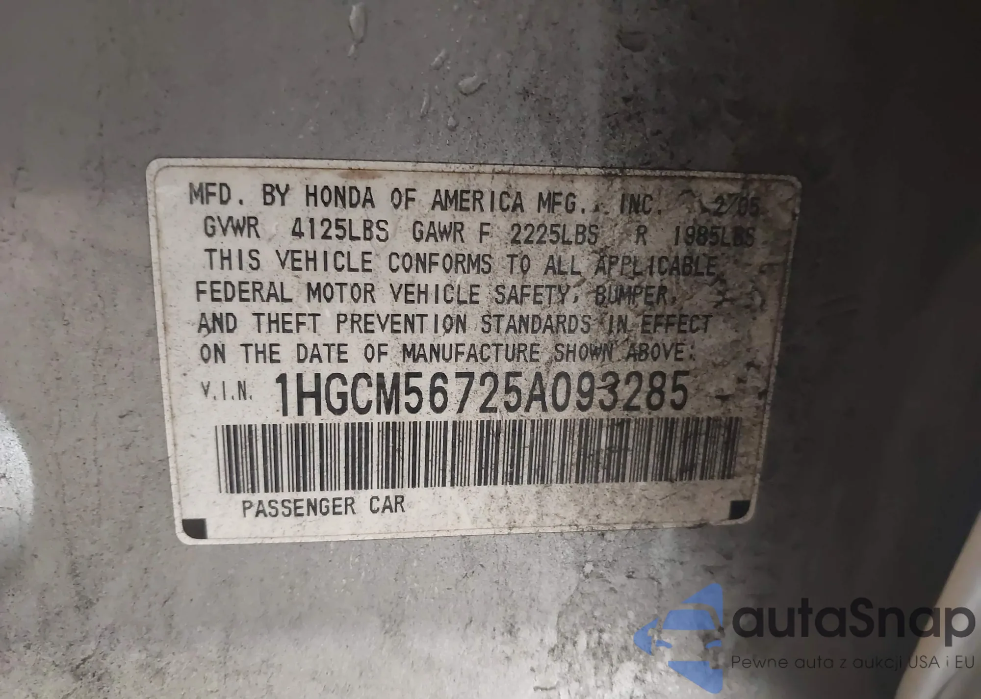 LOT: 42855271 VIN: 1HGCM56725A093285