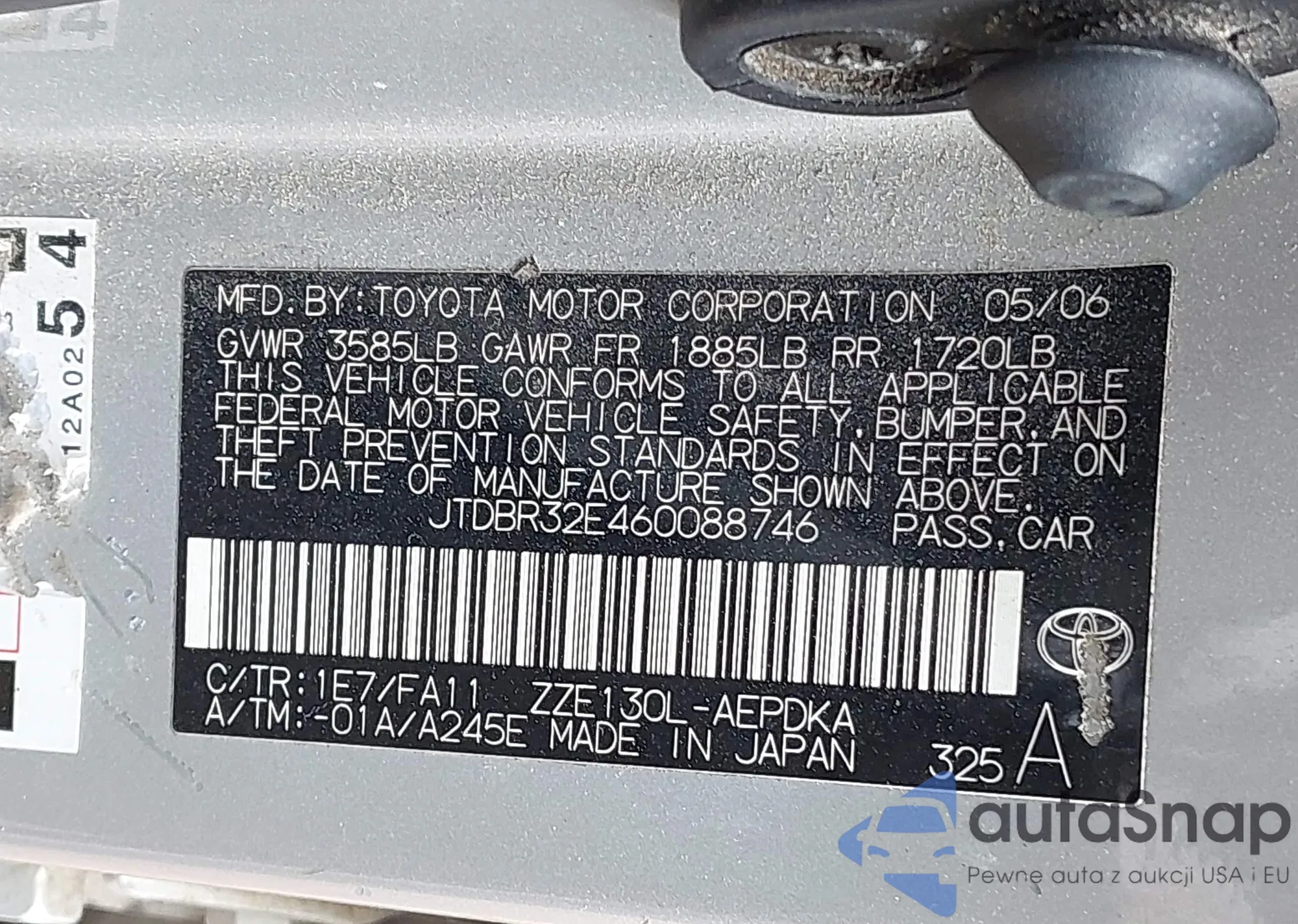 LOT: 41853534 VIN: JTDBR32E460088746