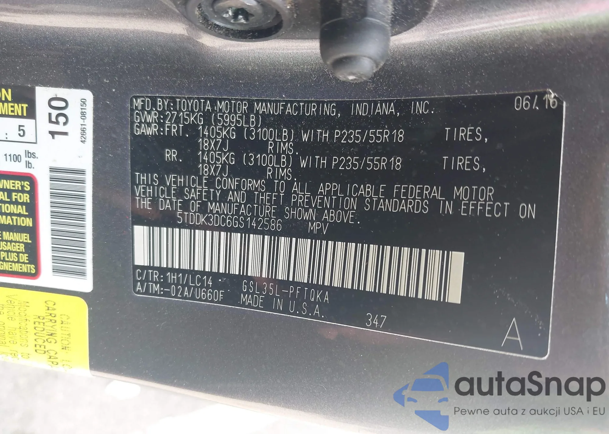 LOT: 42802103 VIN: 5TDKZ3DC5HS826355