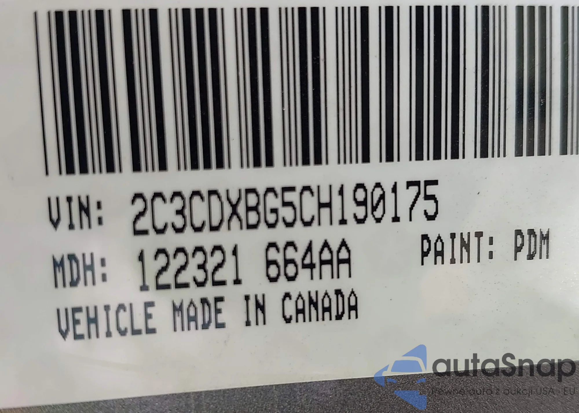 • VIN 2C3CDXBG5CH190175