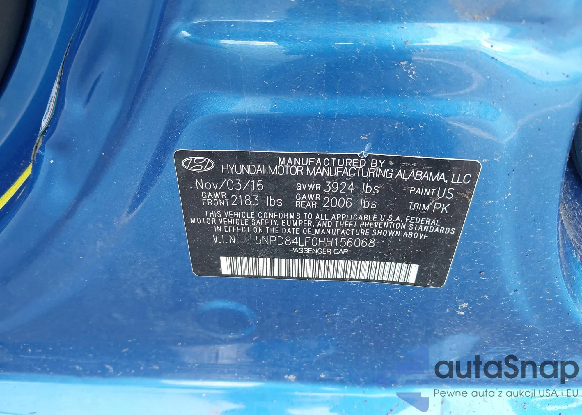 • VIN 5NPD84LF0HH156068