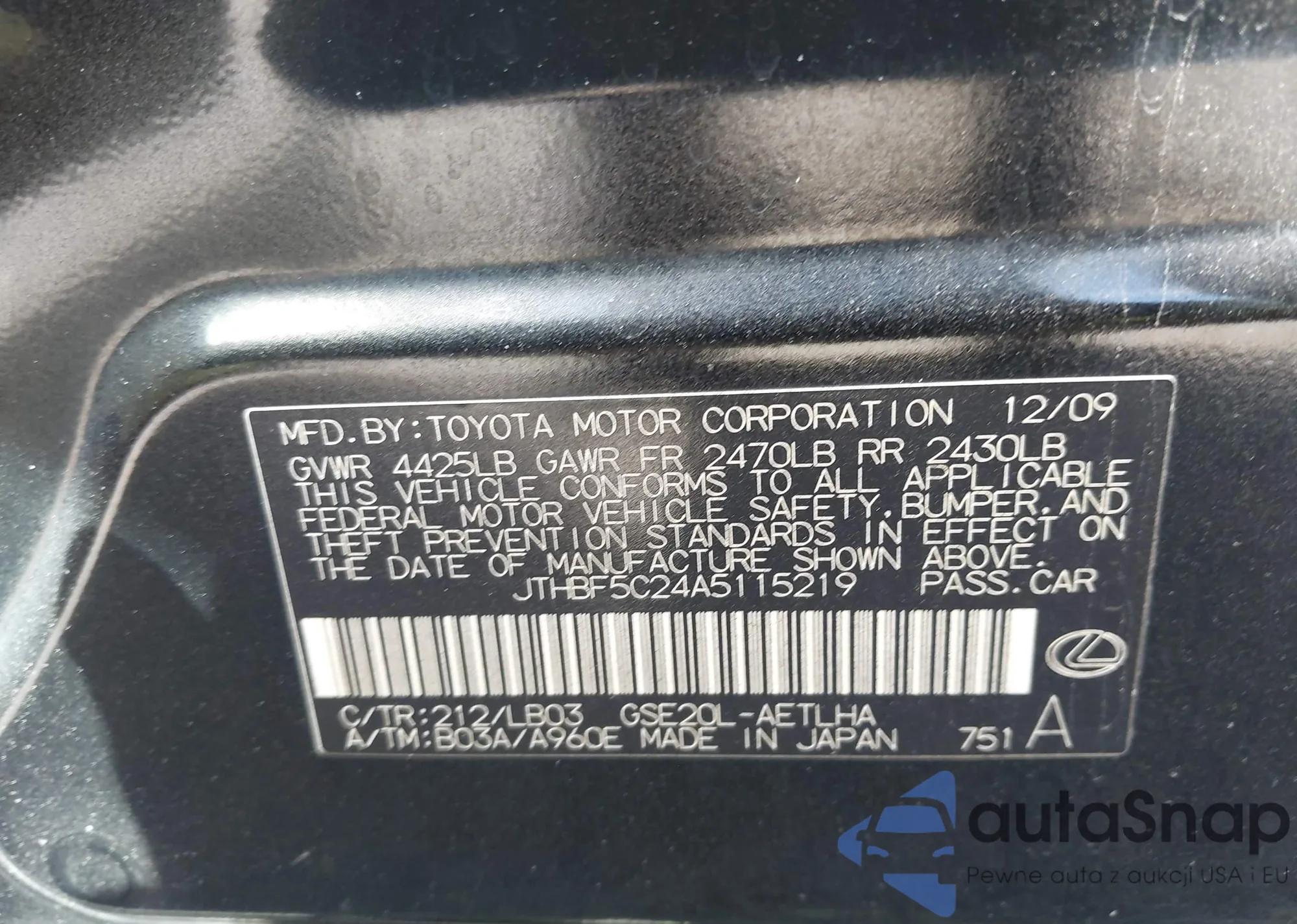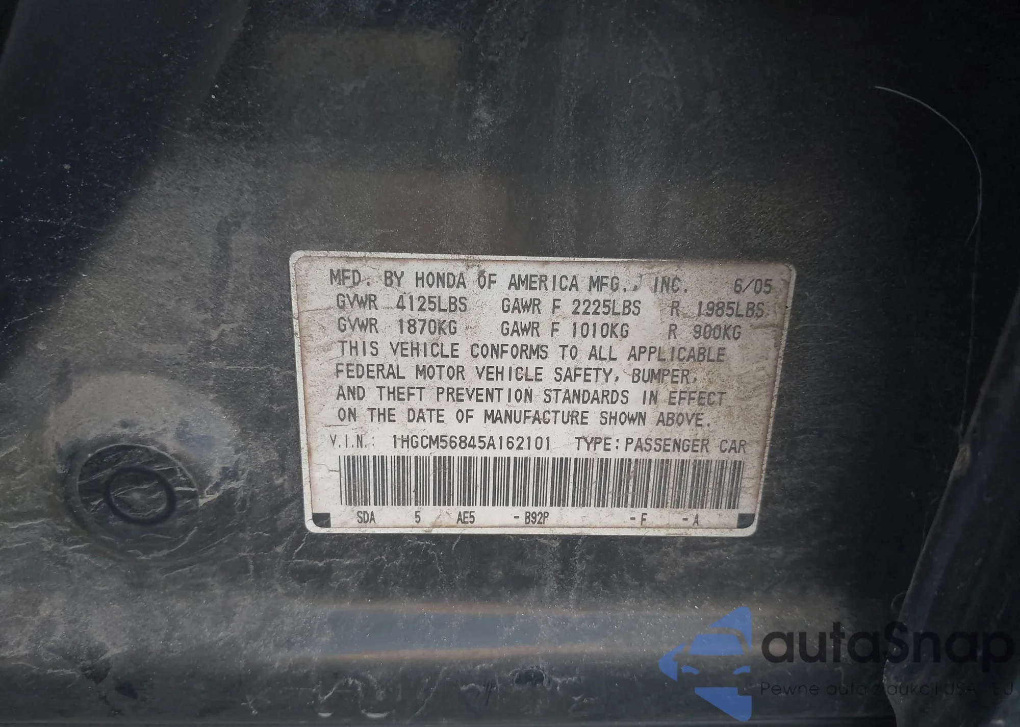 LOT: 42724064 VIN: 1HGCM56845A162101