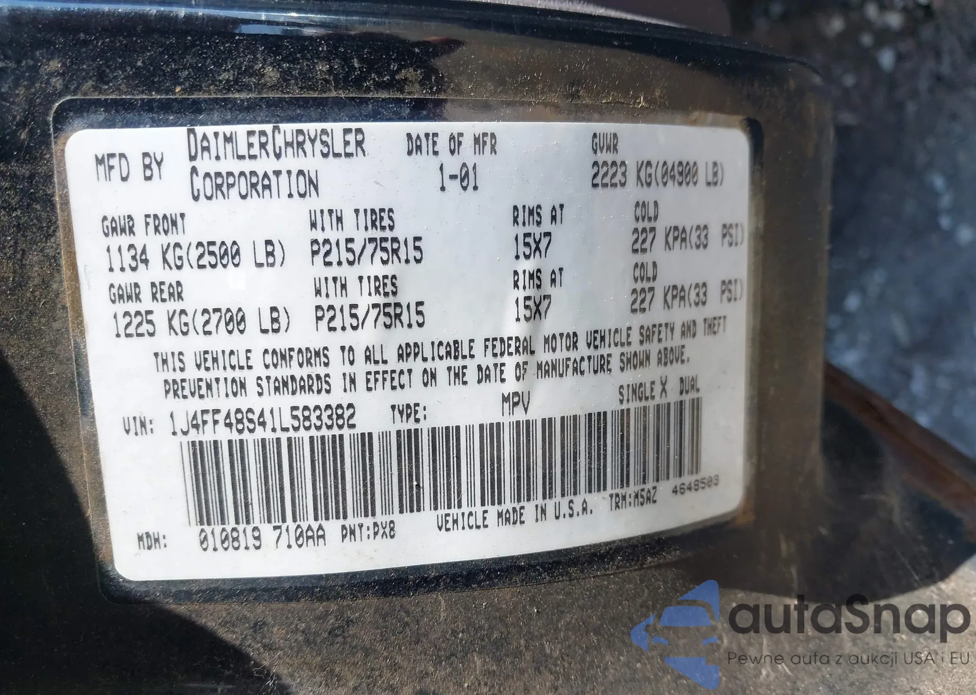 • VIN 1J4FF48S41L583382