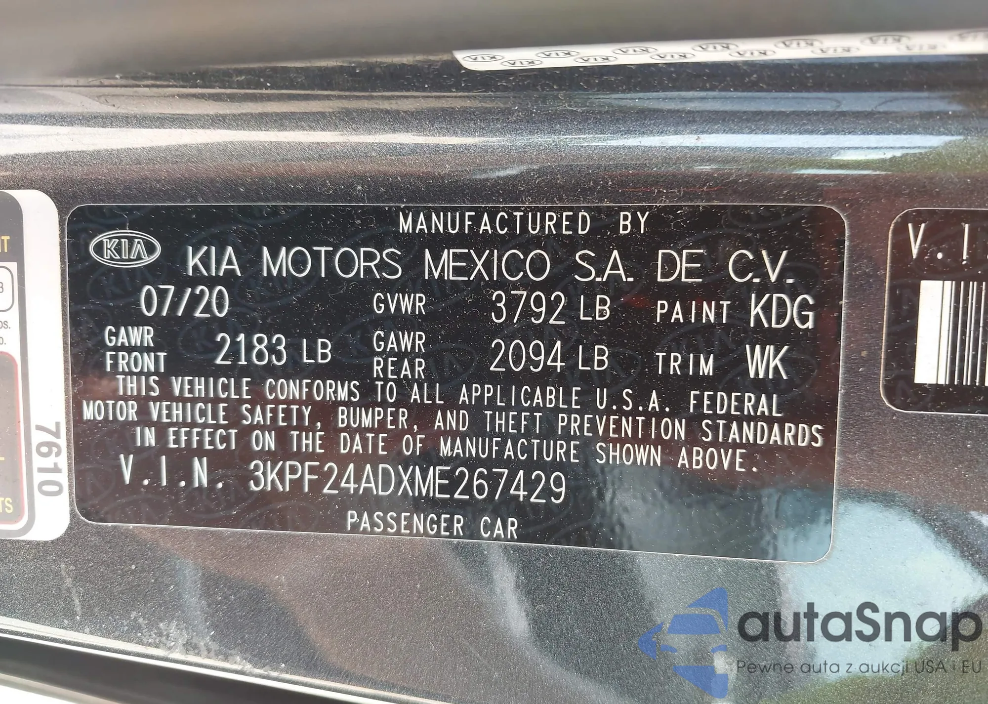 • VIN 3KPF24ADXME267429