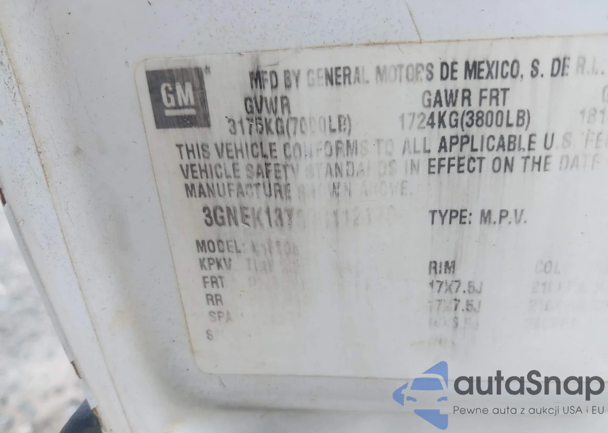LOT: 42709132 VIN: 3GNFK12337G187104