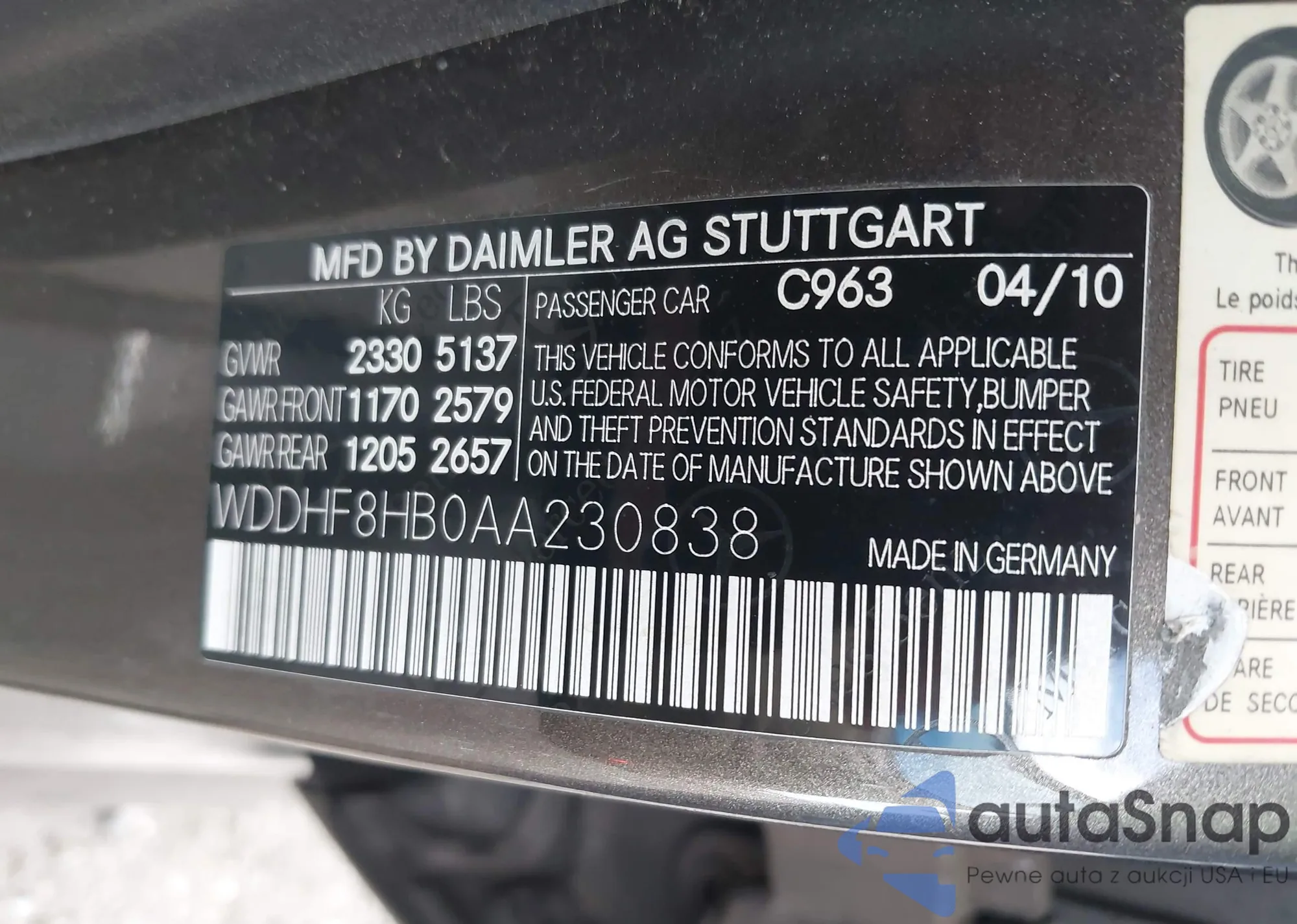 • VIN WDDHF8HB0AA230838