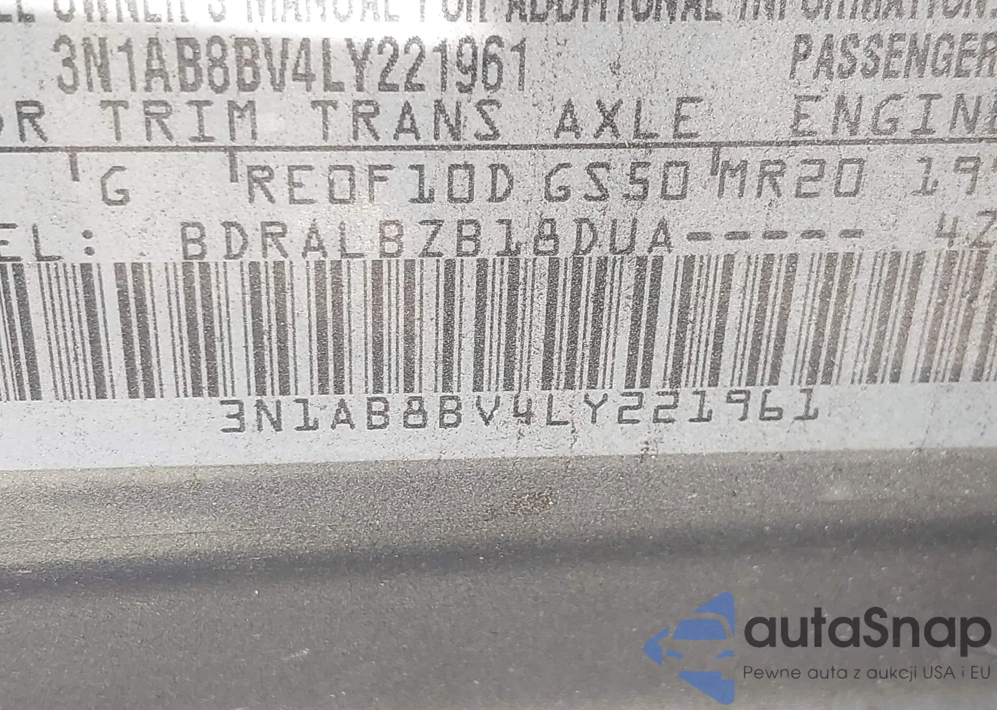 • VIN 3N1AB8BV4LY221961