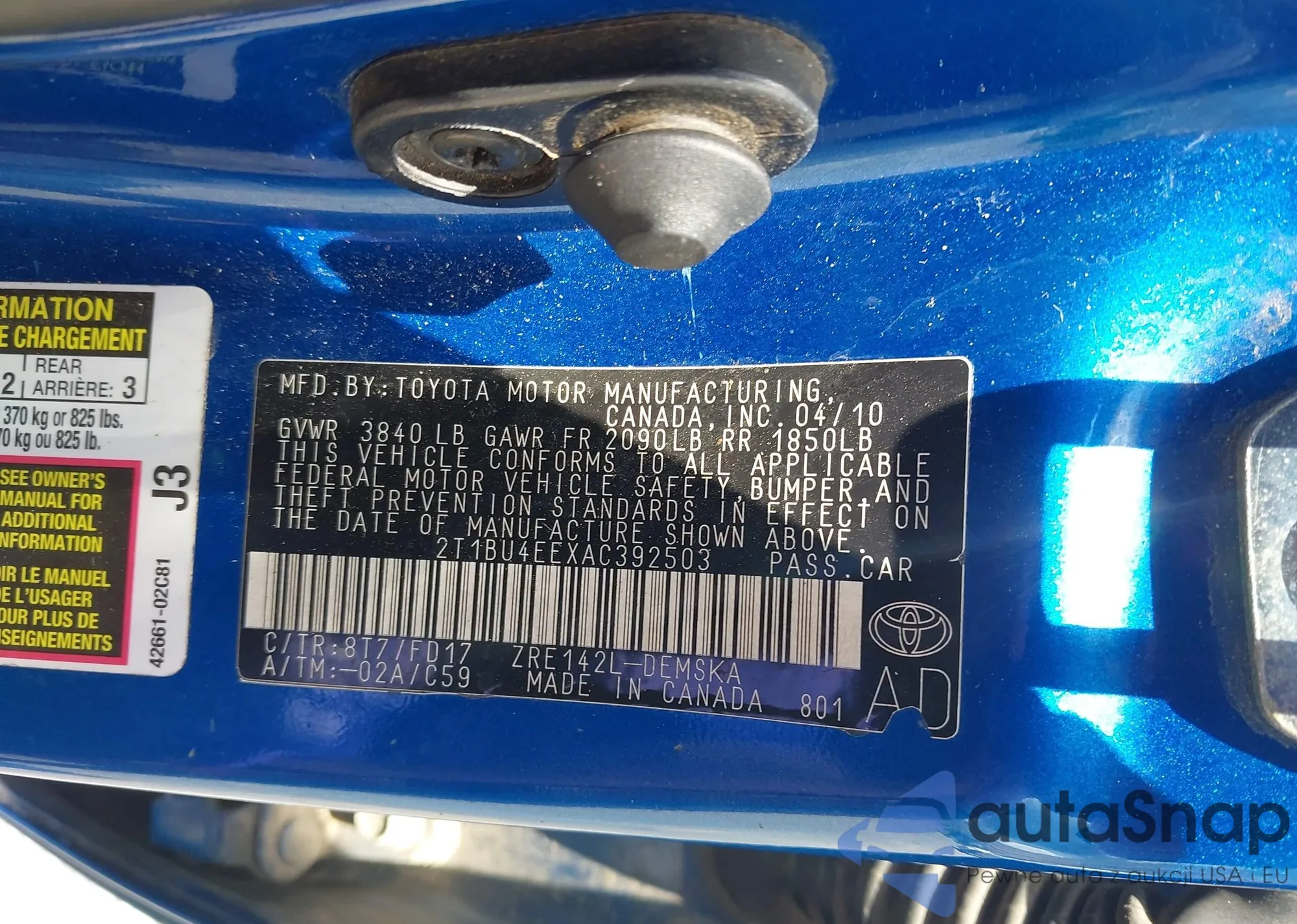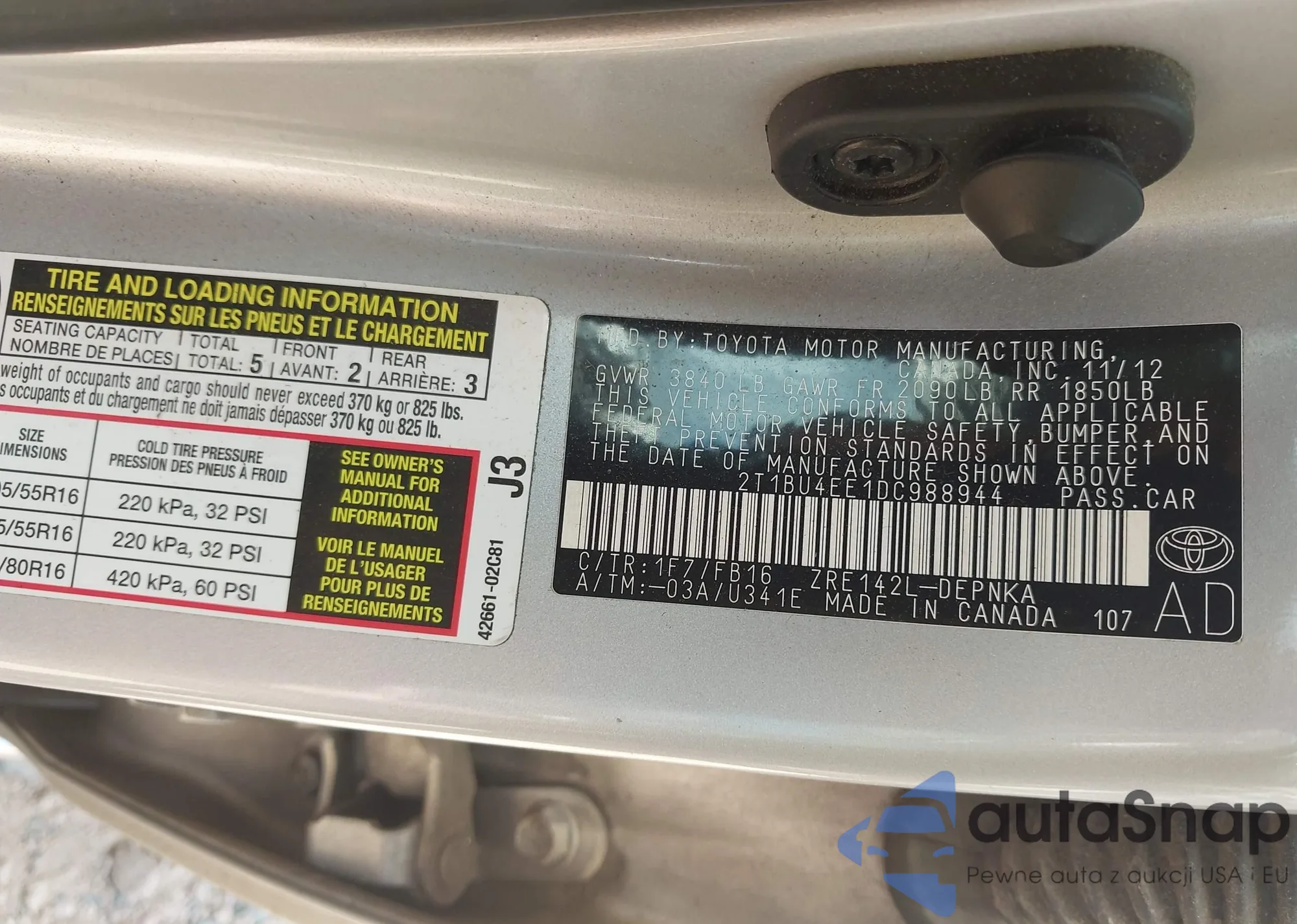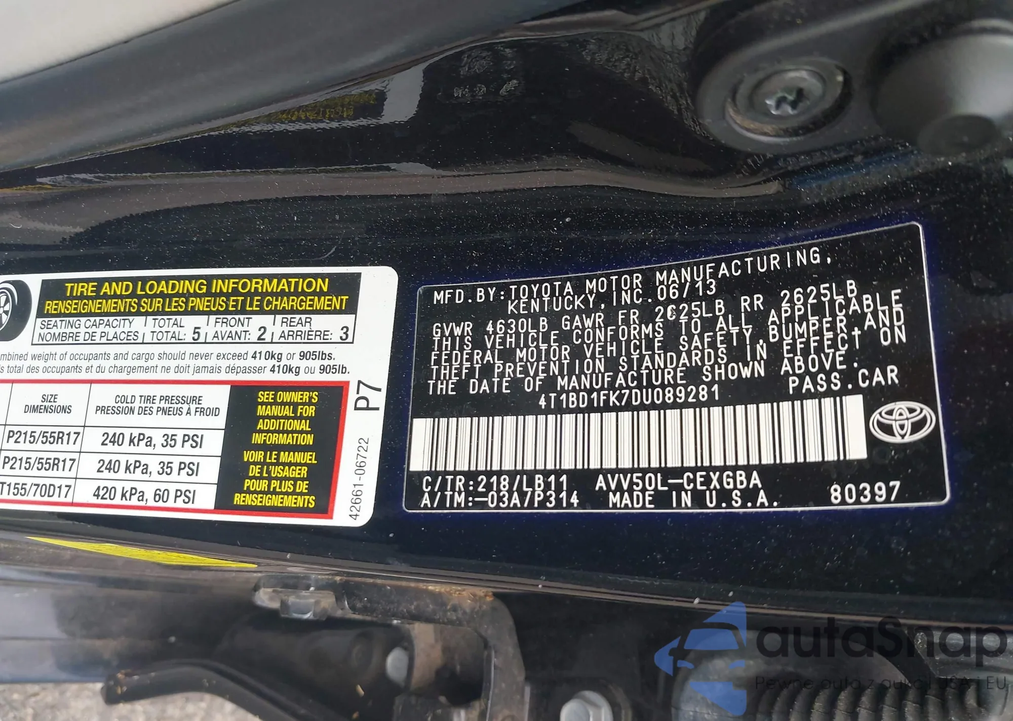 • VIN 4T1BD1FK7DU089281