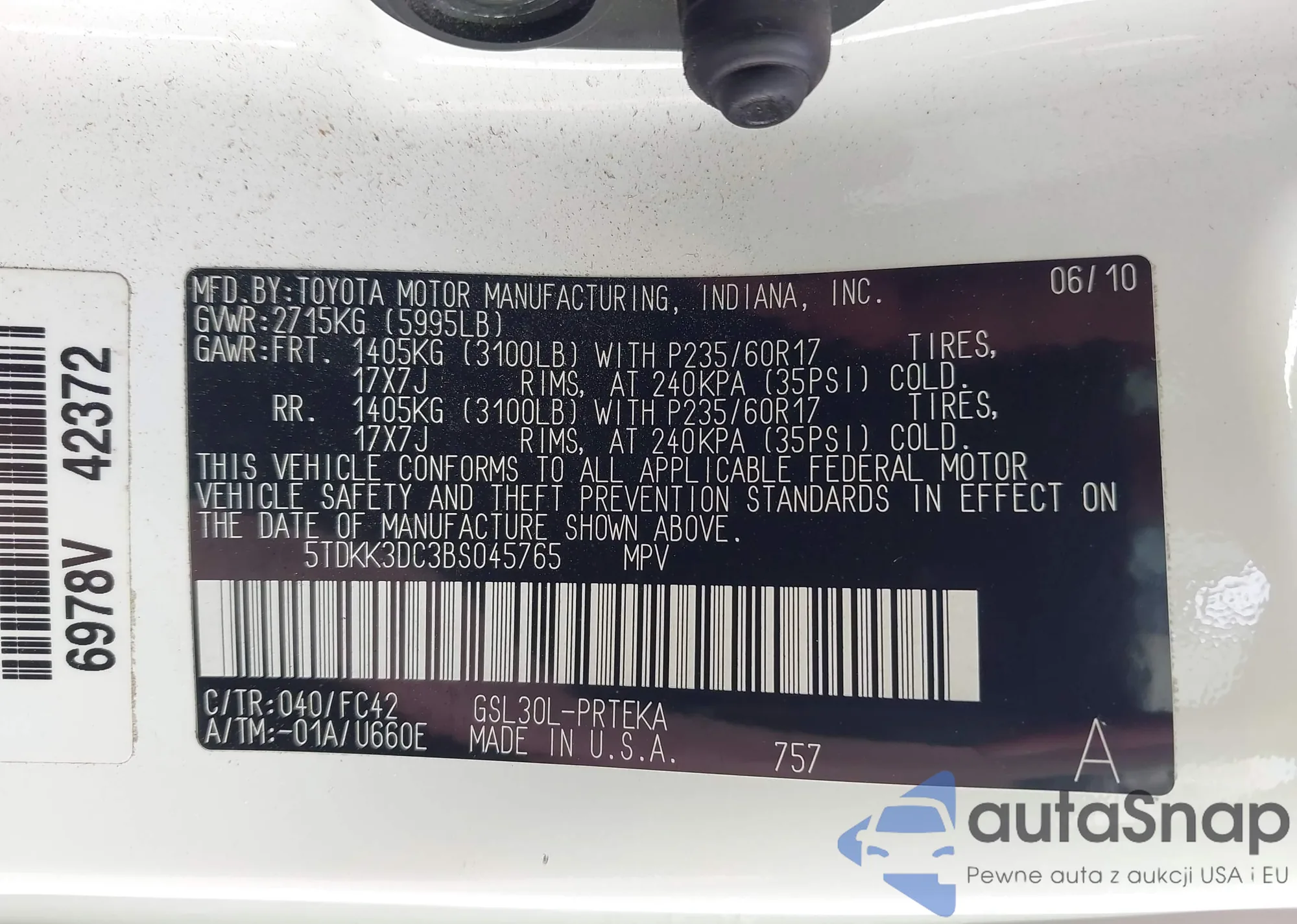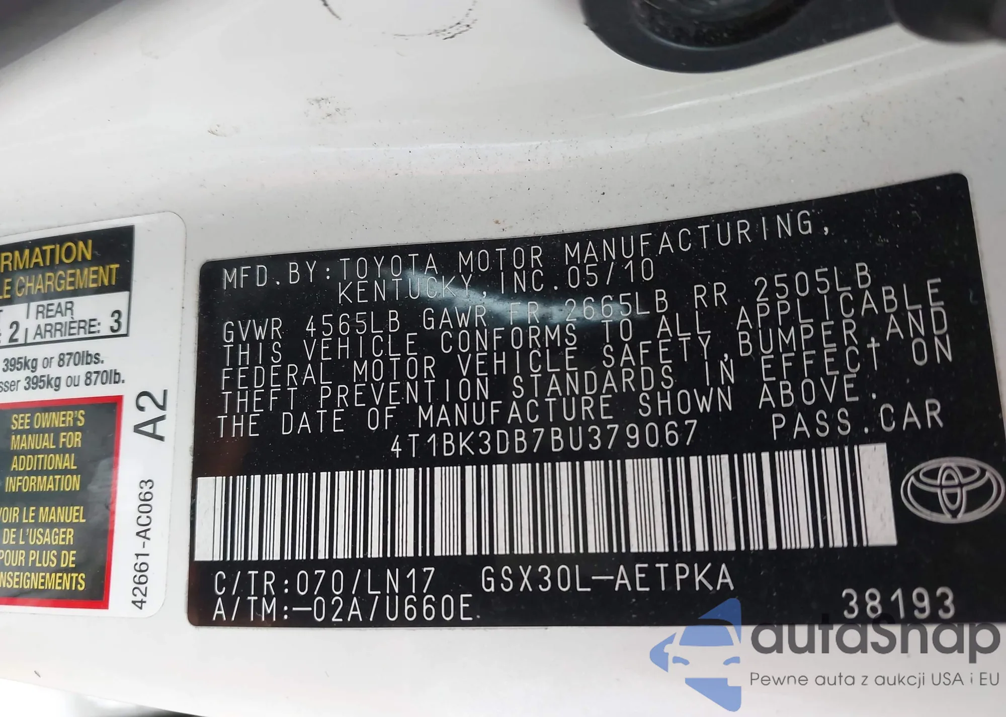 • VIN 4T1BK3DB7BU379067