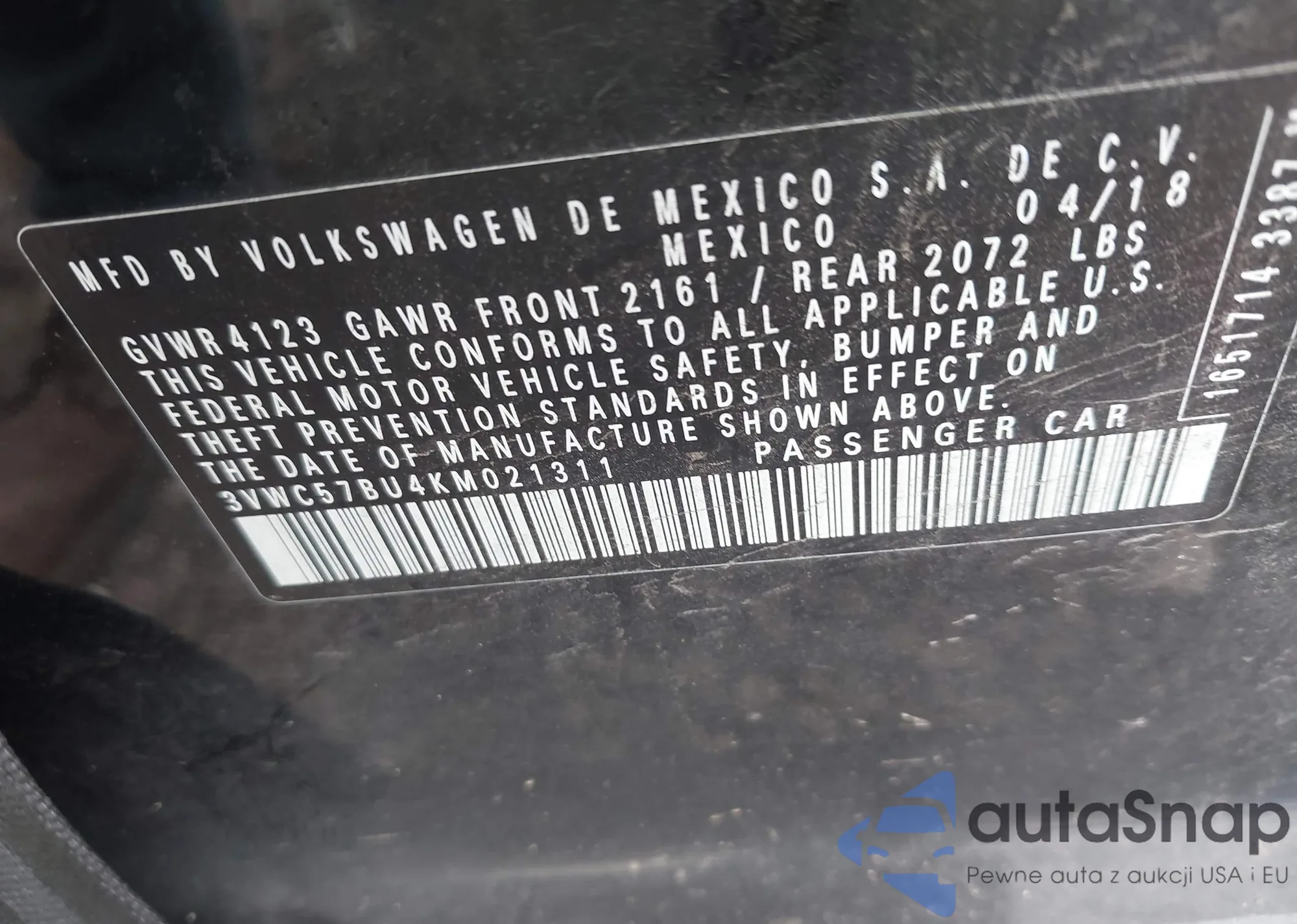• VIN 3VWC57BU4KM021311