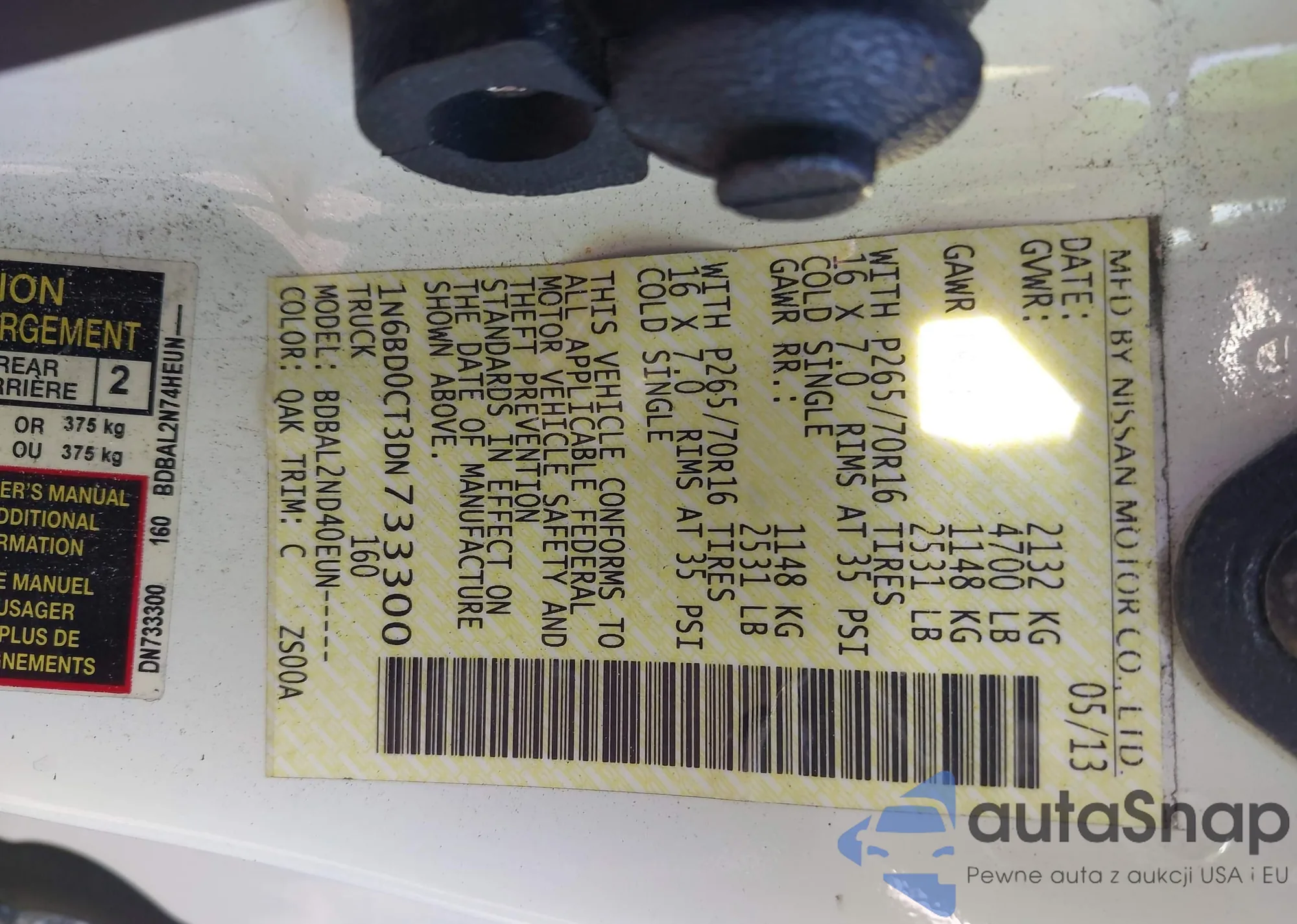 • VIN 1N6BD0CT3DN733300