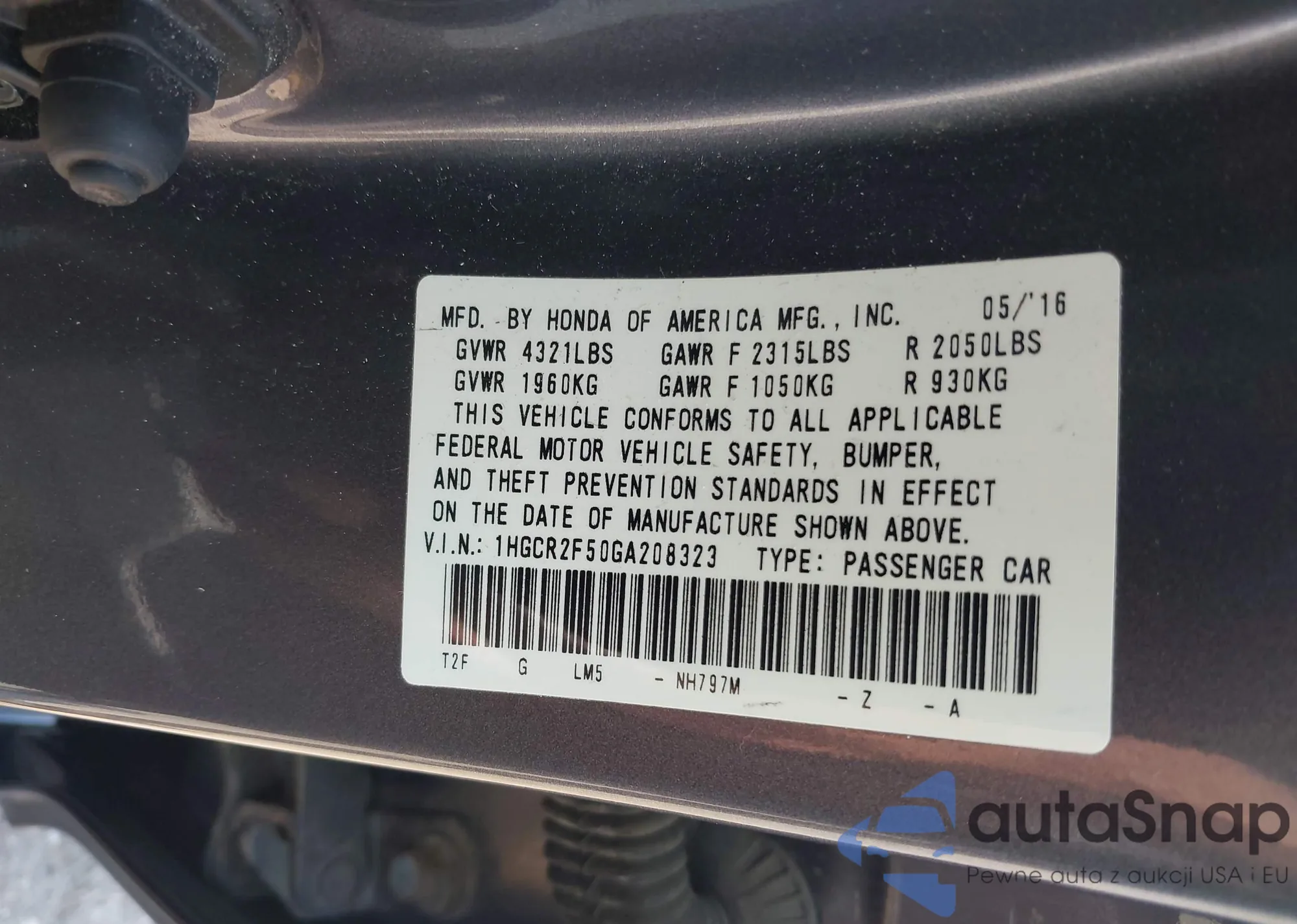 • VIN 1HGCR2F50GA208323