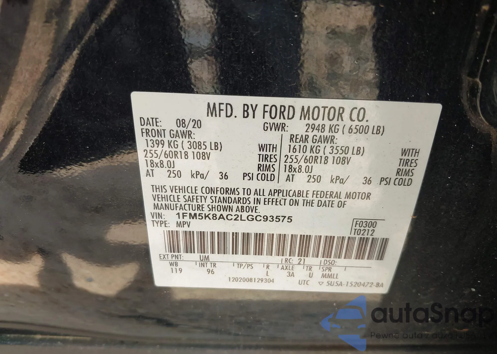 • VIN 1FM5K8ACXLGC93579