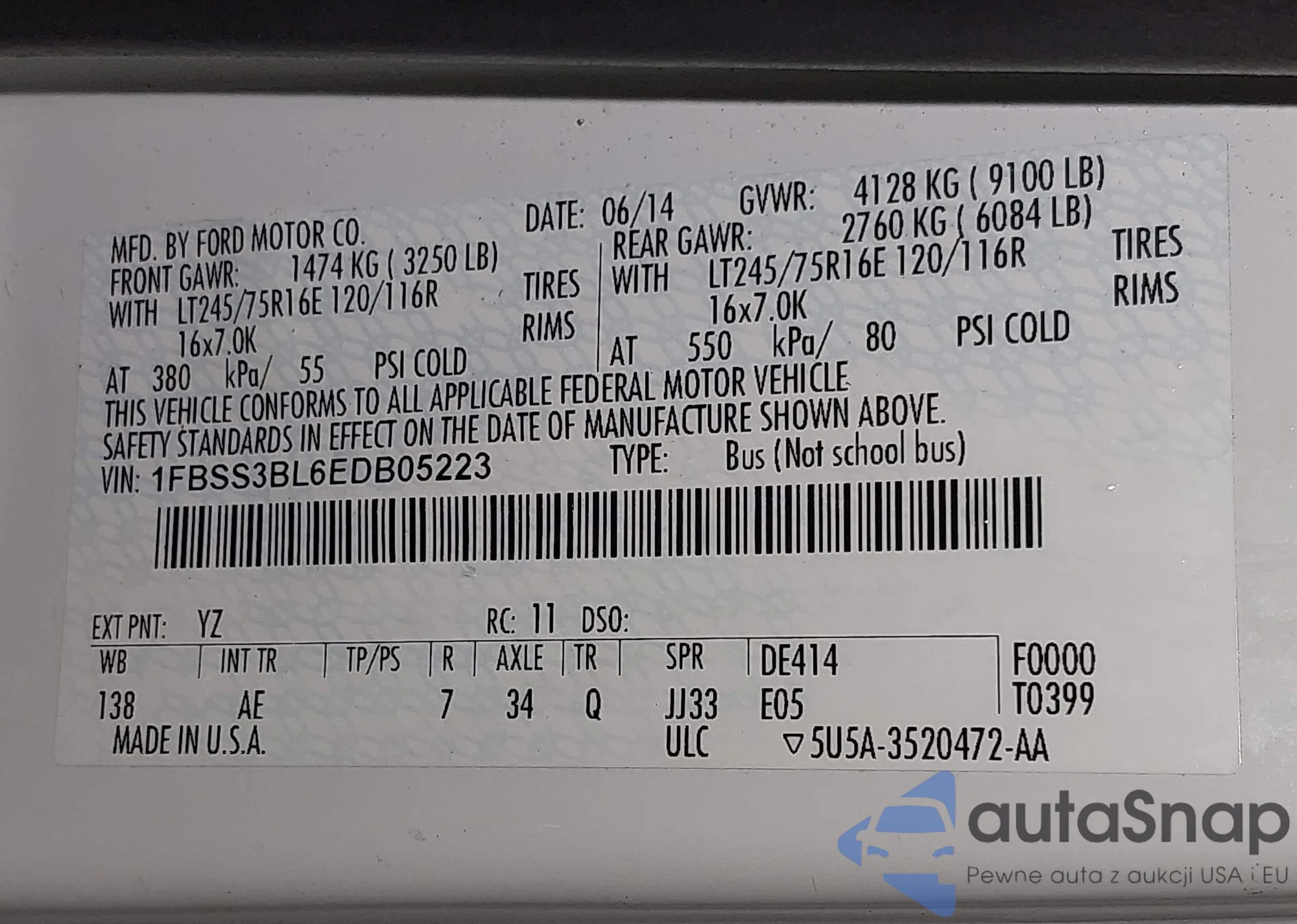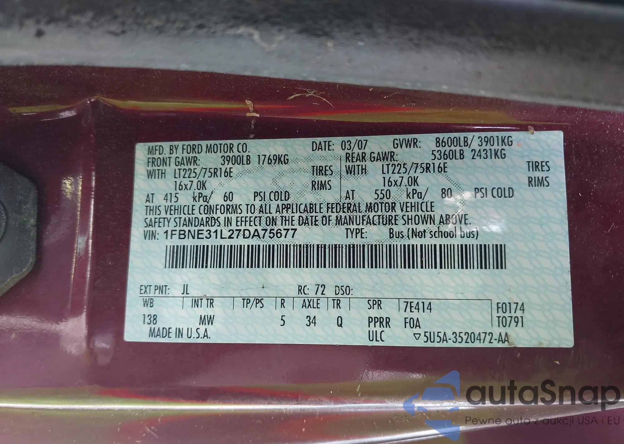 LOT: 42318590 VIN: 1FMEU74E38UA66356