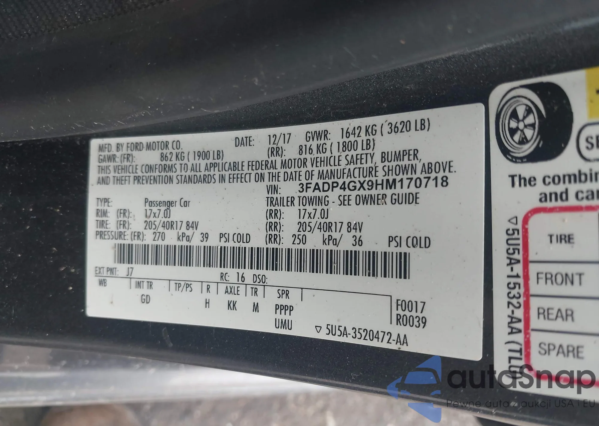 • VIN 3FADP4GX9HM170718