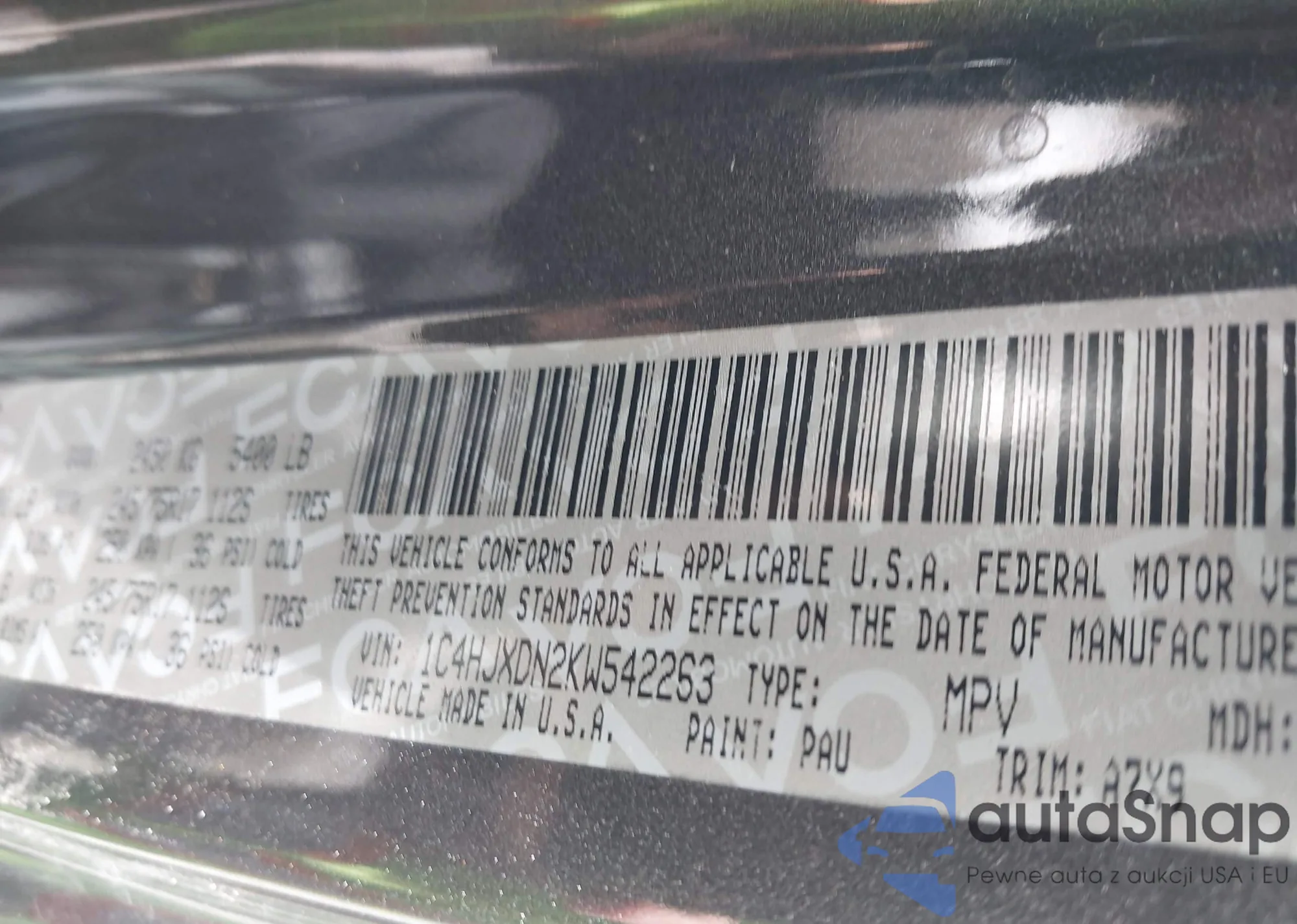 • VIN 1C4HJXDN2KW542263