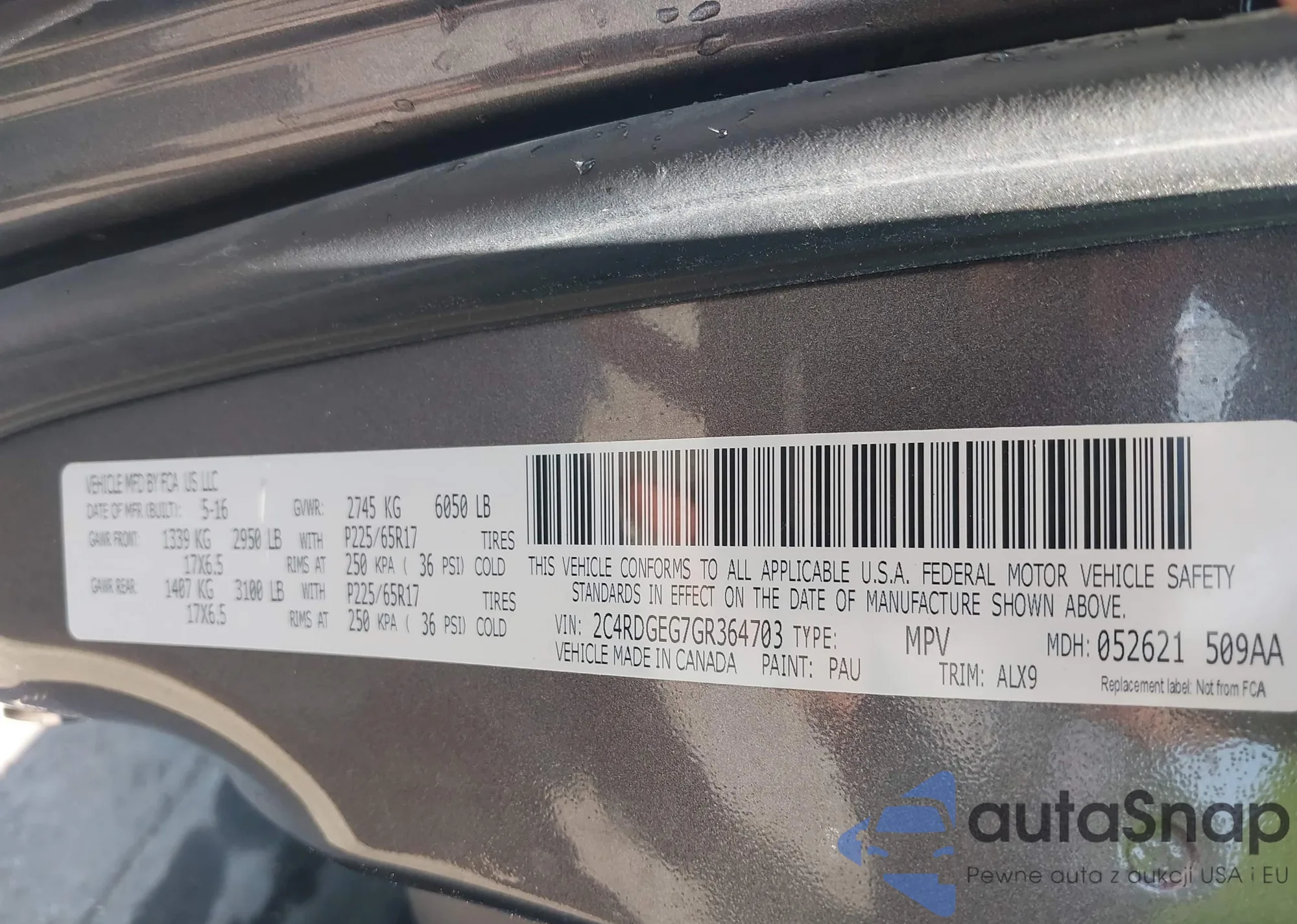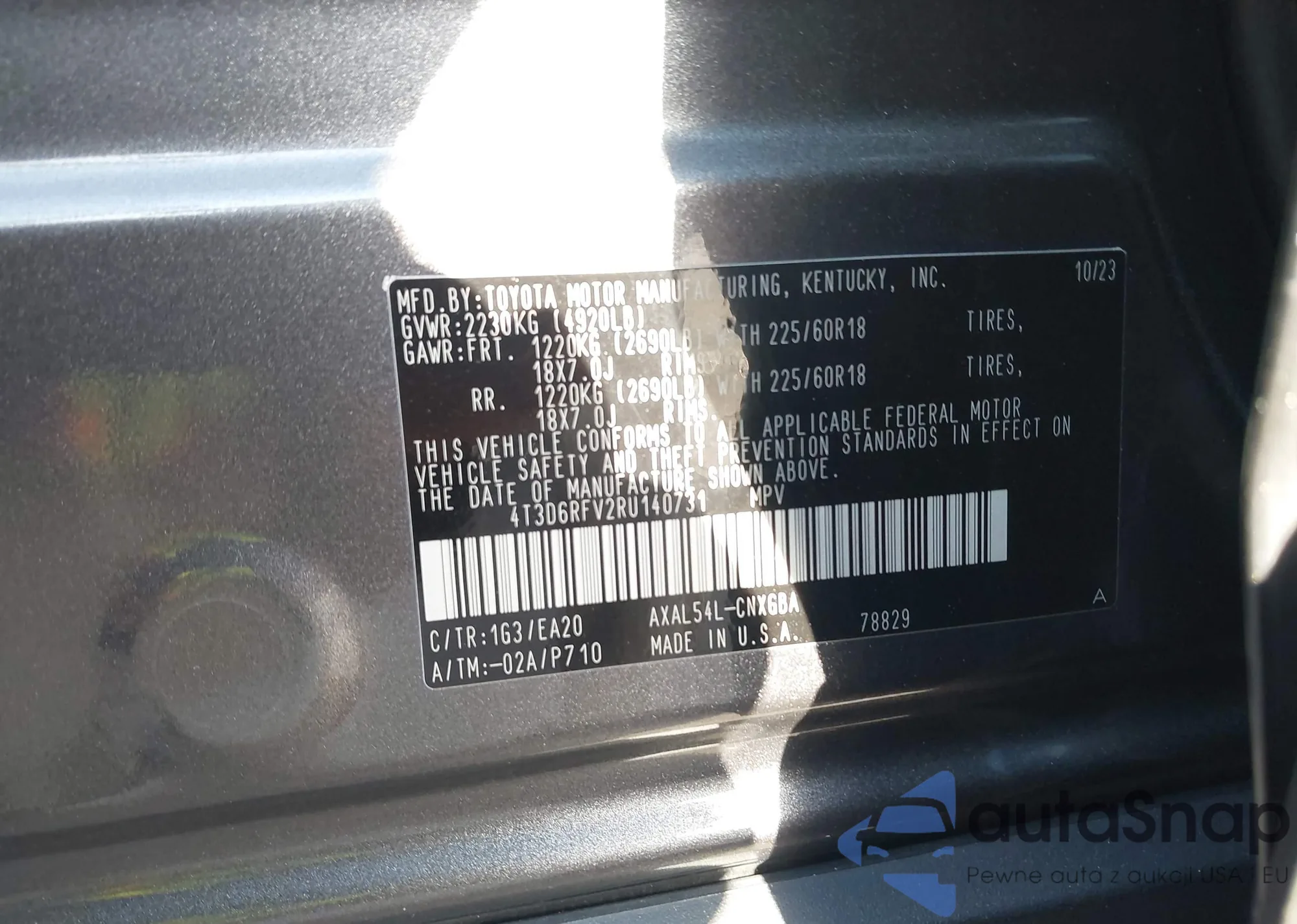 • VIN 4T3D6RFV2RU140731