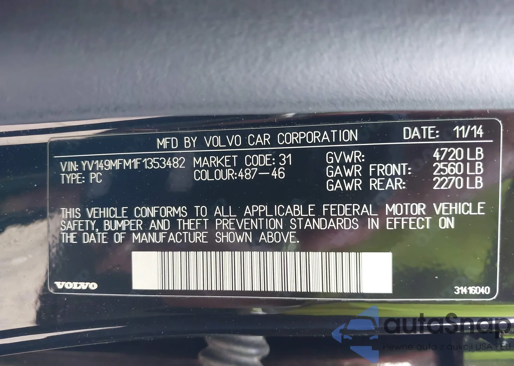 LOT: 42288193 VIN: YV149MFM1F1353482