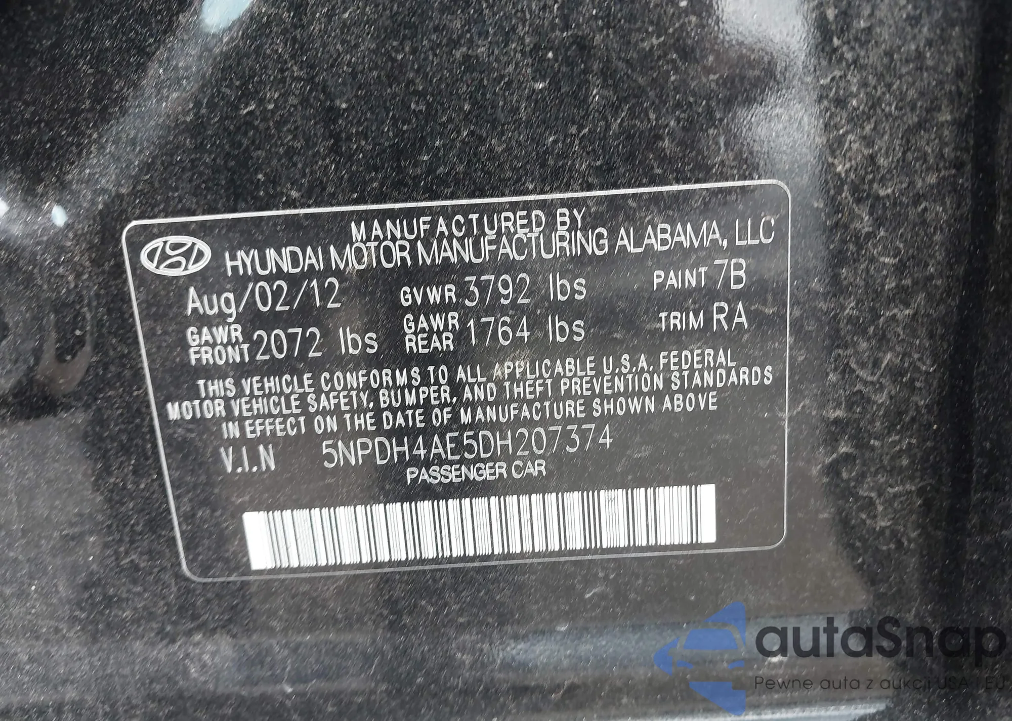• VIN 5NPDH4AE5DH207374