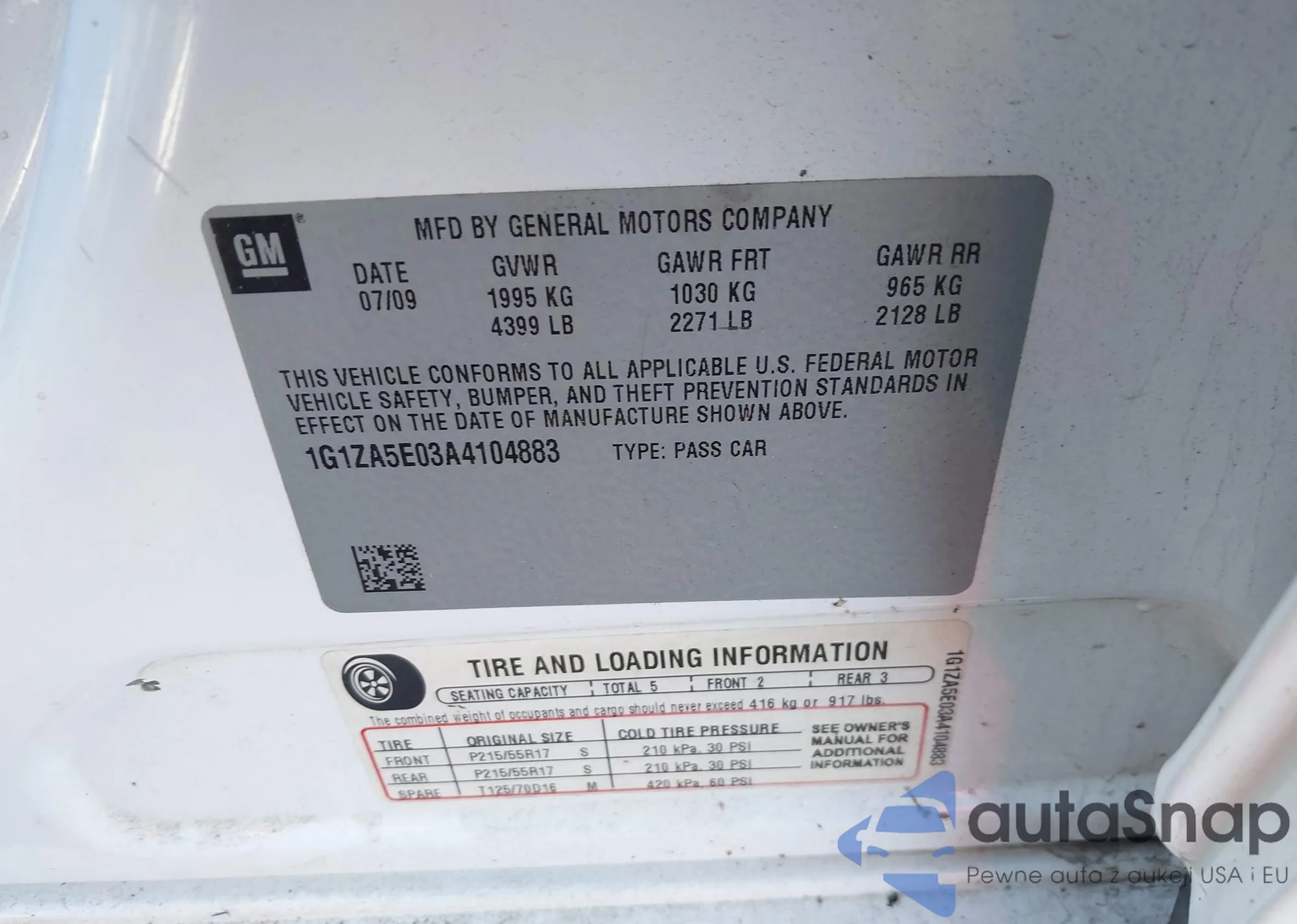 • VIN 1G1ZA5E03A4104883