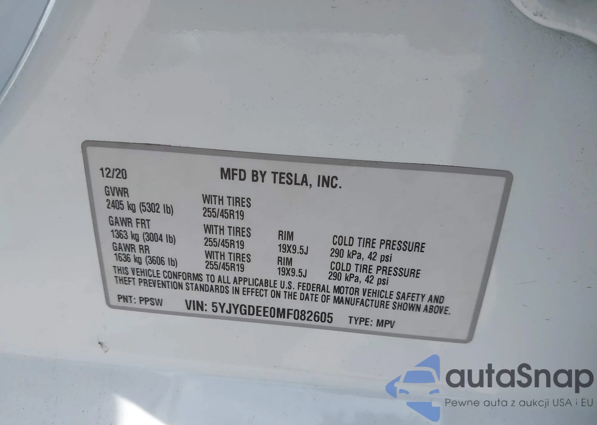 LOT: 42675391 VIN: 5YJYGDEE0MF082605